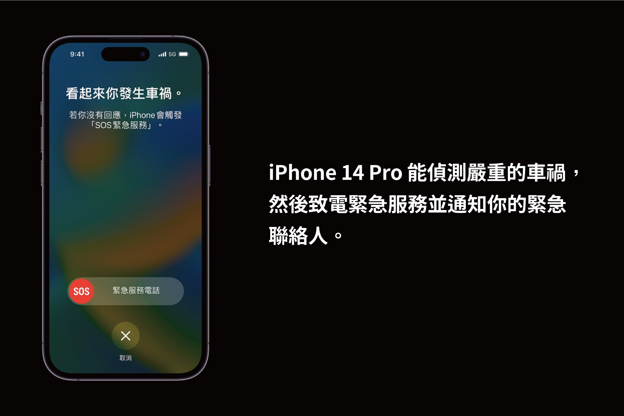 內建「高動態範圍陀螺儀」及「雙核加速感應器」,萬一發生車禍,它會自動啟動 SOS 緊急服務 ,撥打緊急聯絡人電話。