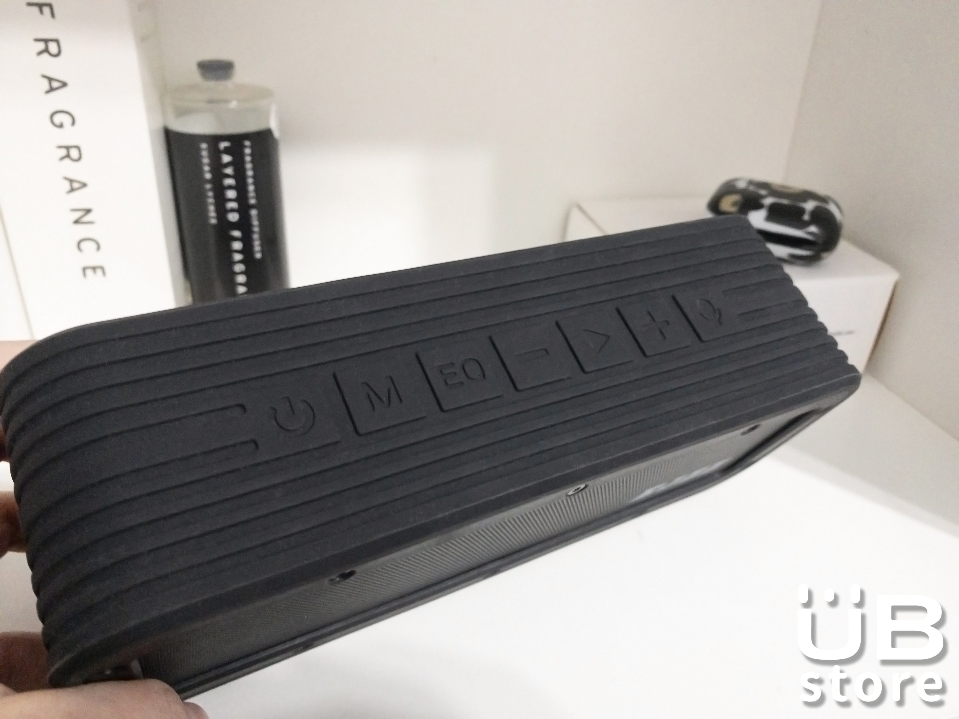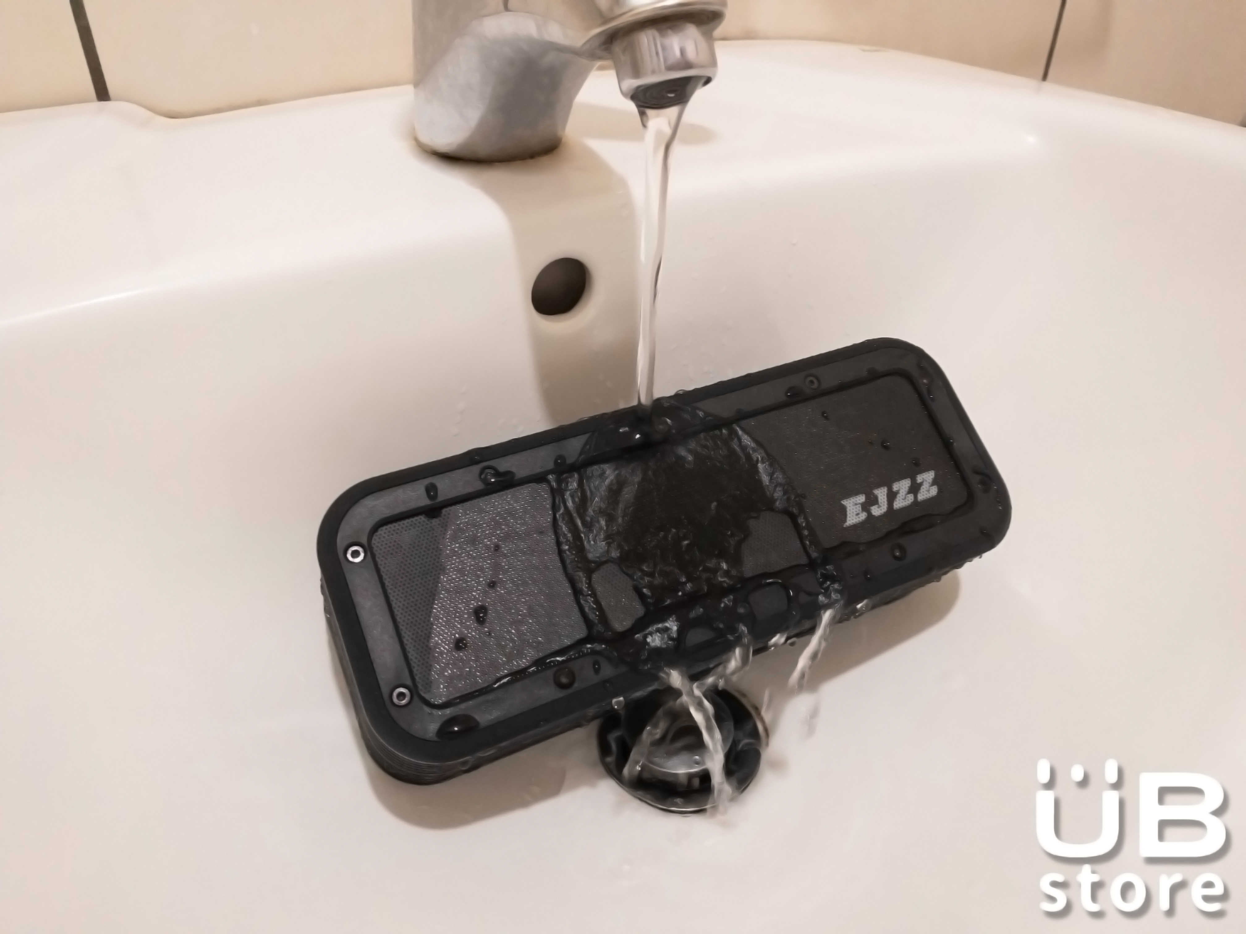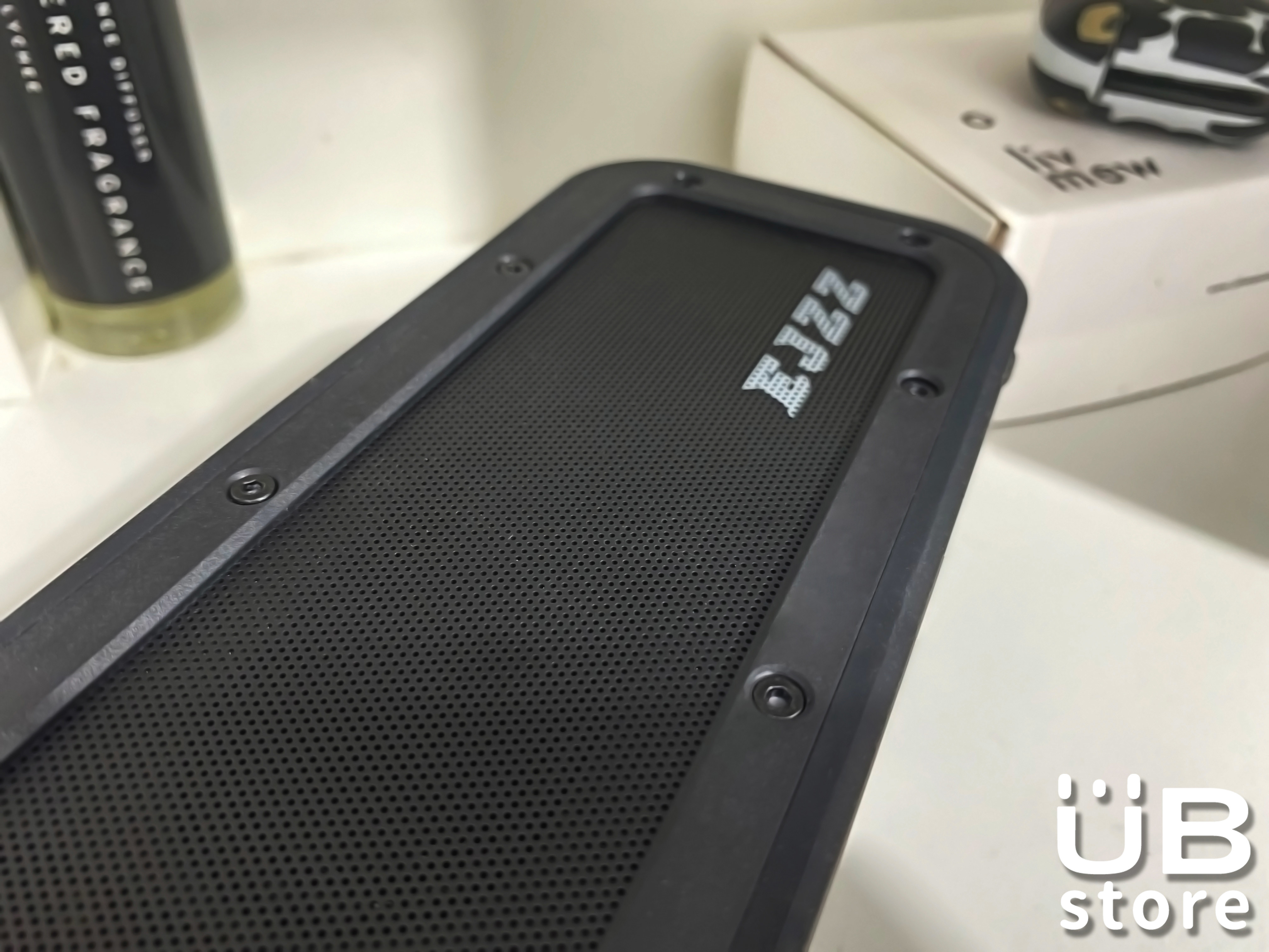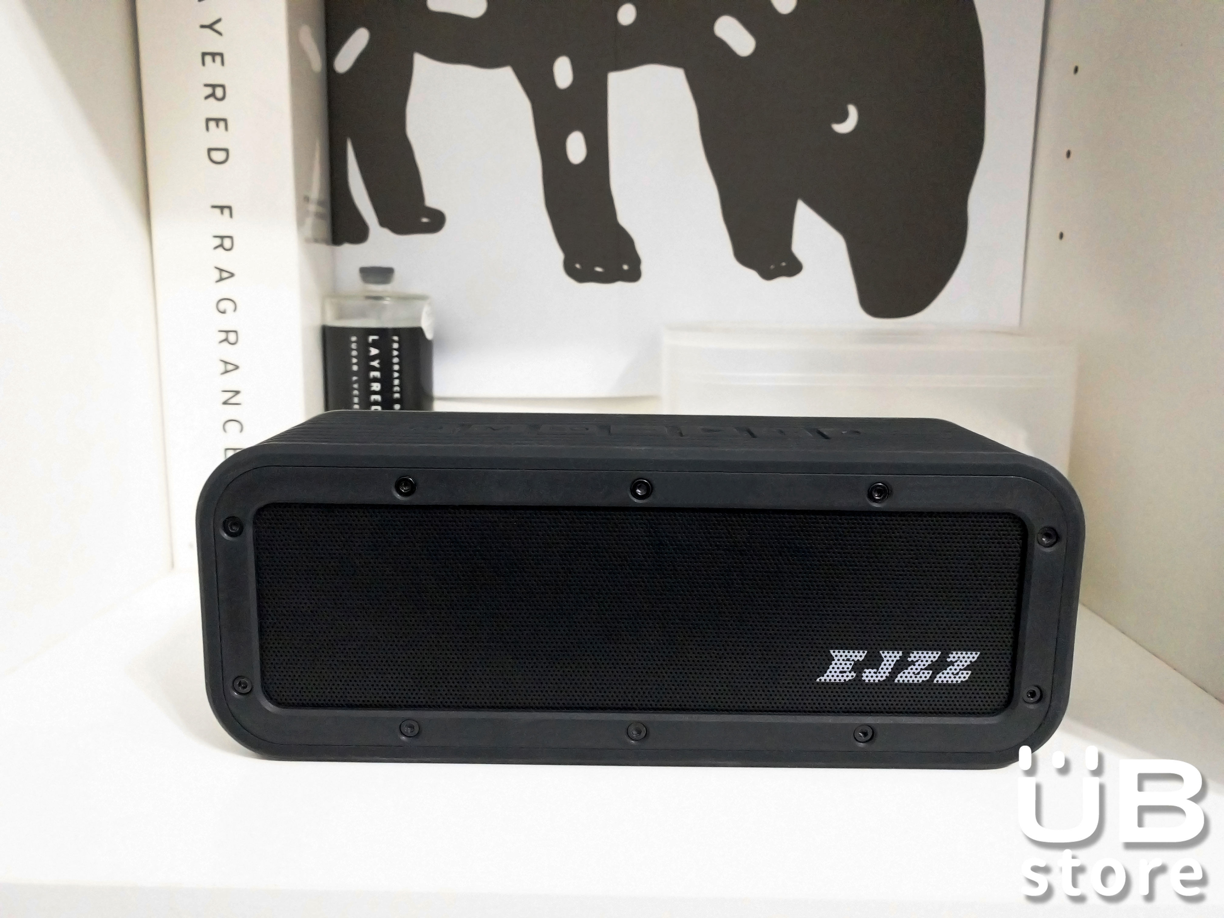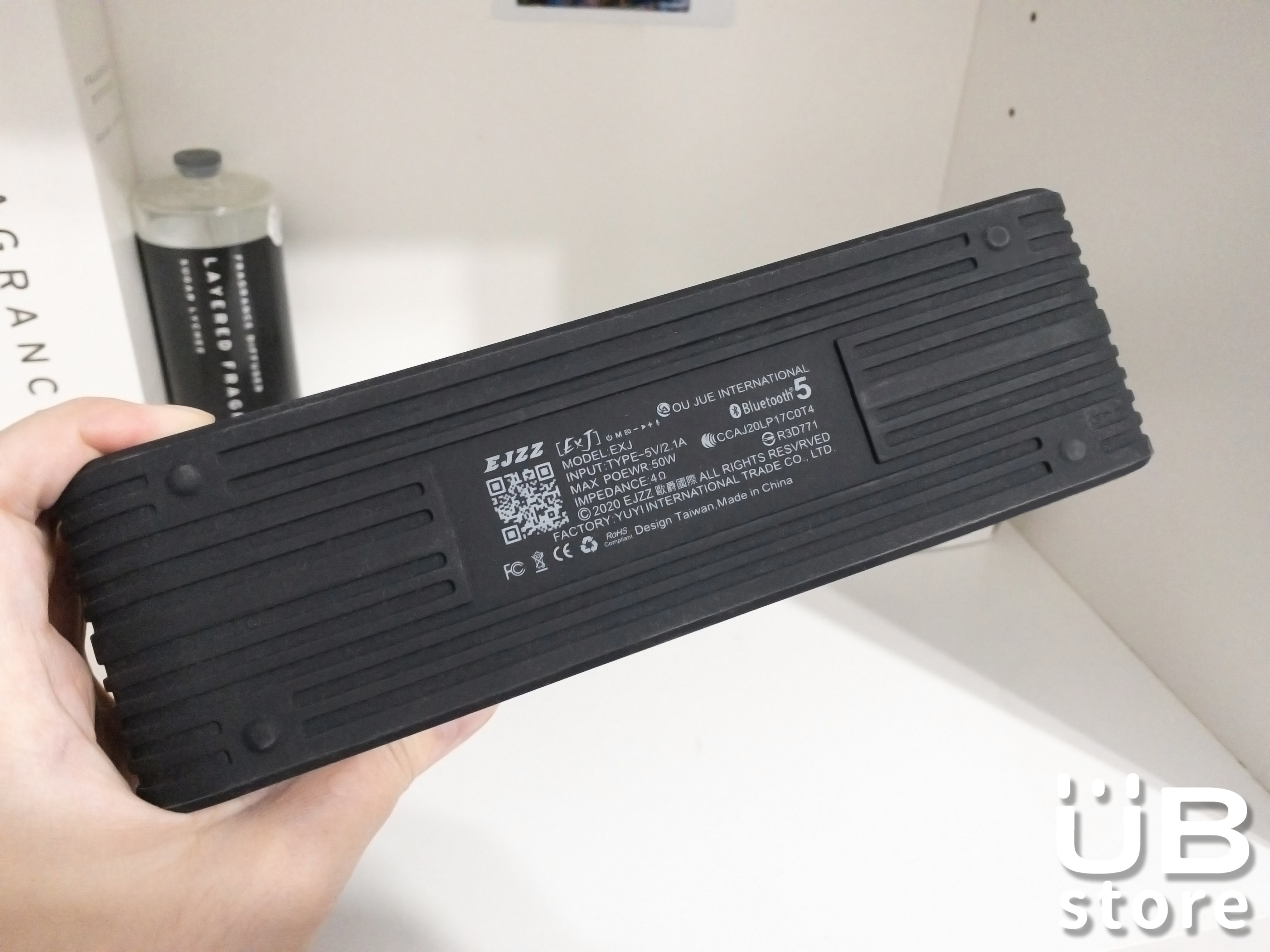 EJZZ EXJ 藍牙喇叭拿起來蠻有份量,造型是全黑很帥氣的設計。喇叭四周圍圈著矽膠材質,且這是屬於軍規等級的矽膠,防撞、防摔、防水,是一體成型的!缺點是容易沾黏一些毛屑灰塵,不過還好用水沖洗就能清潔了。