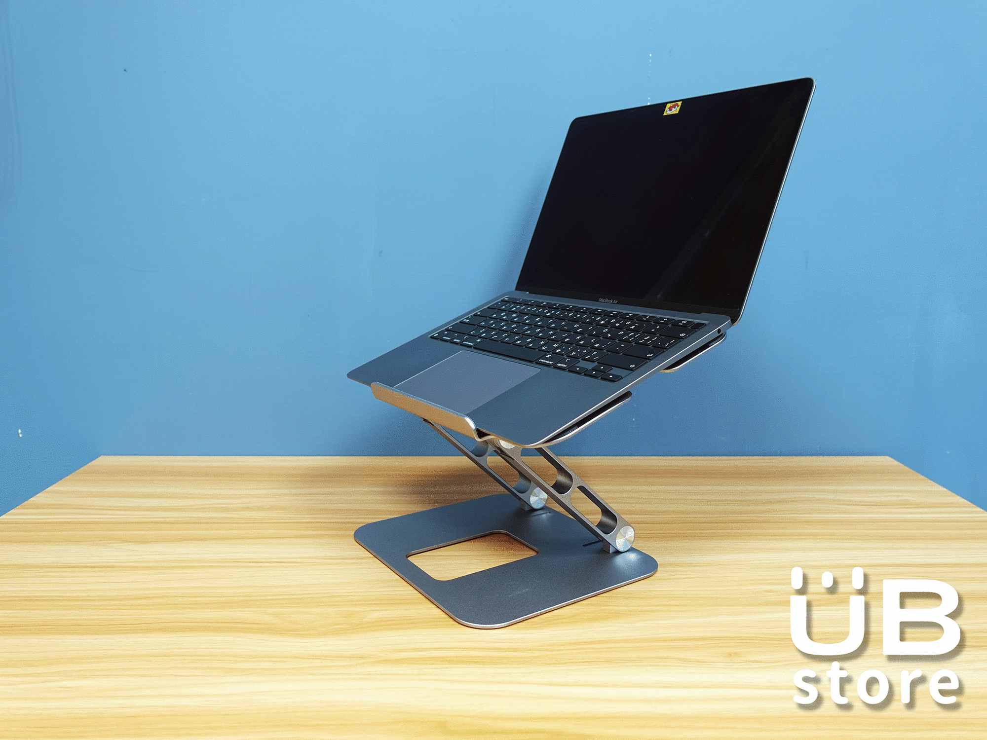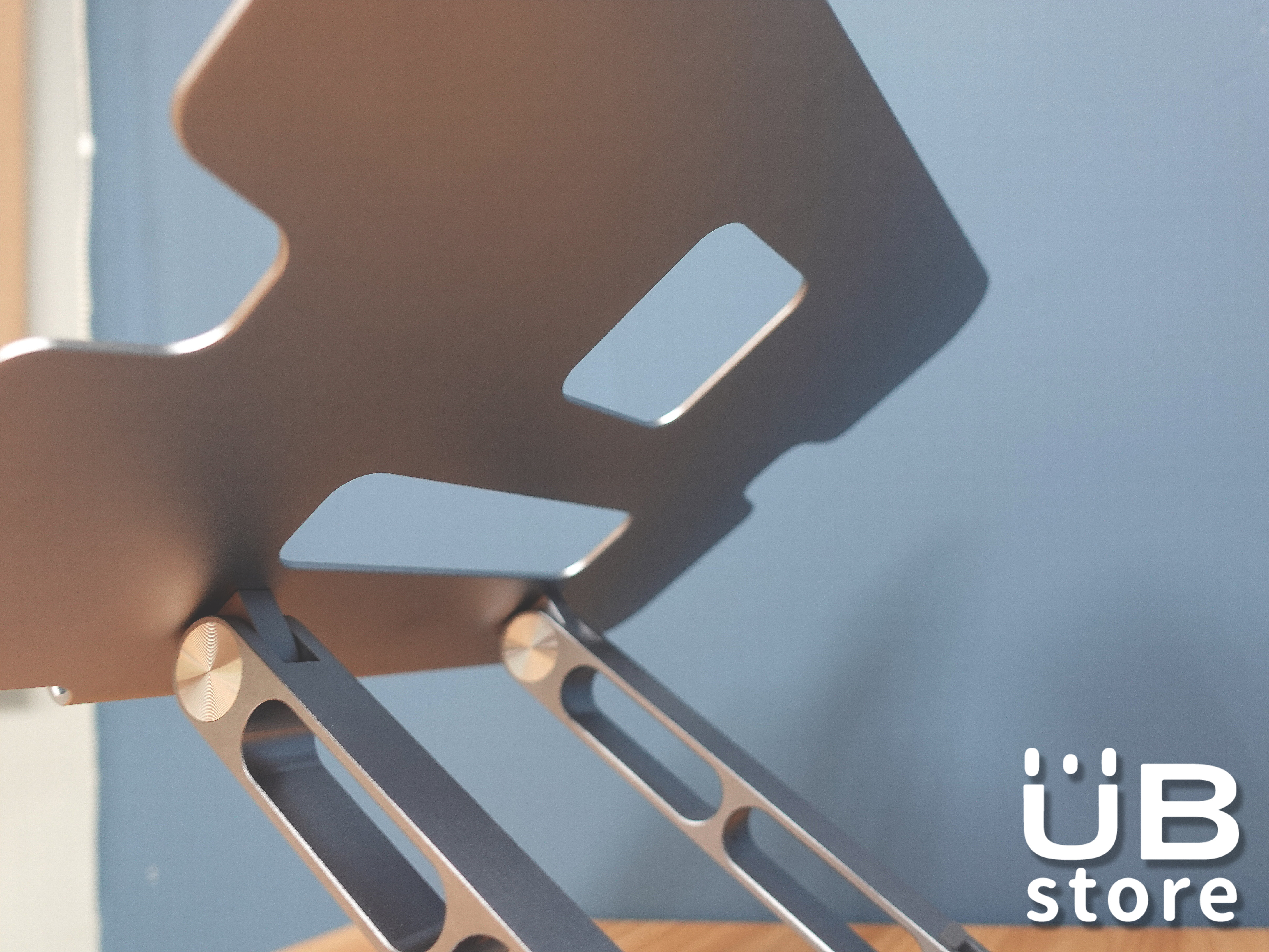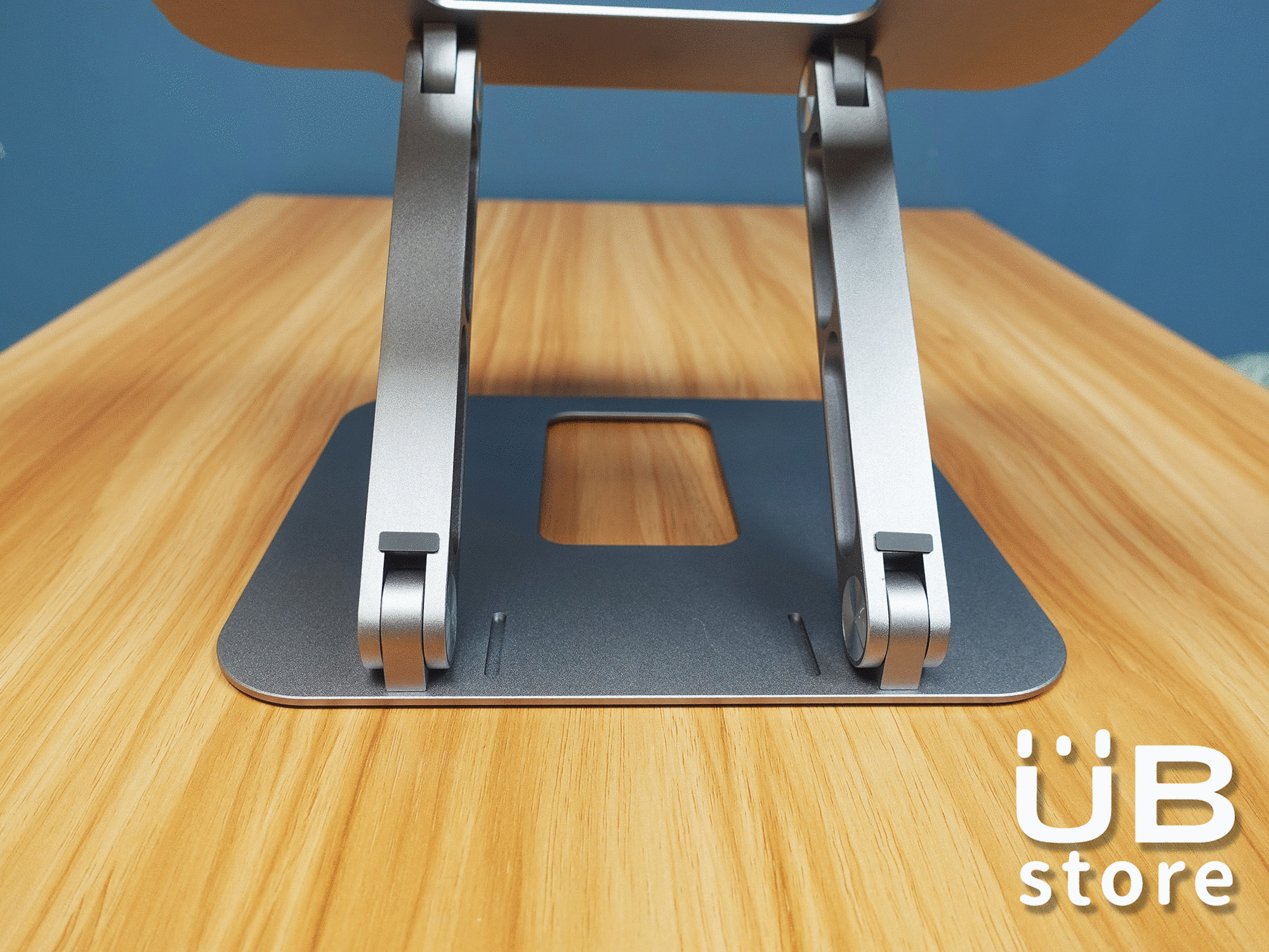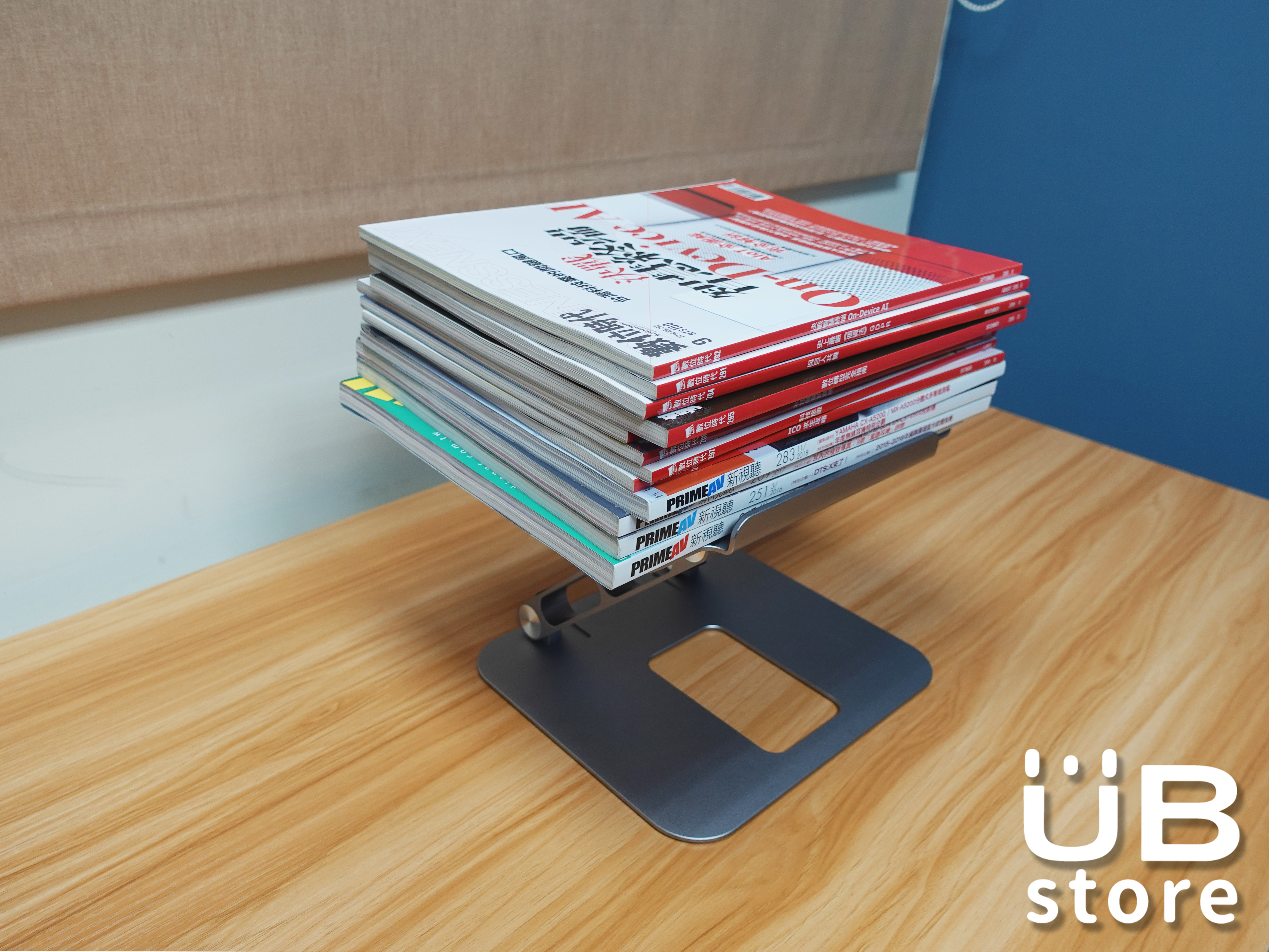 筆電支架採全鋁合金製成,表面和和Macbook一樣為太空灰霧面設計,相當有質感。整體尺寸為22.6(長) x 5.3(深) x 29(高)cm,要撐起16吋的MacBook Pro也沒有問題,筆電和桌面接觸的地方,皆有矽膠防滑設計,防止設備滑落和刮傷。