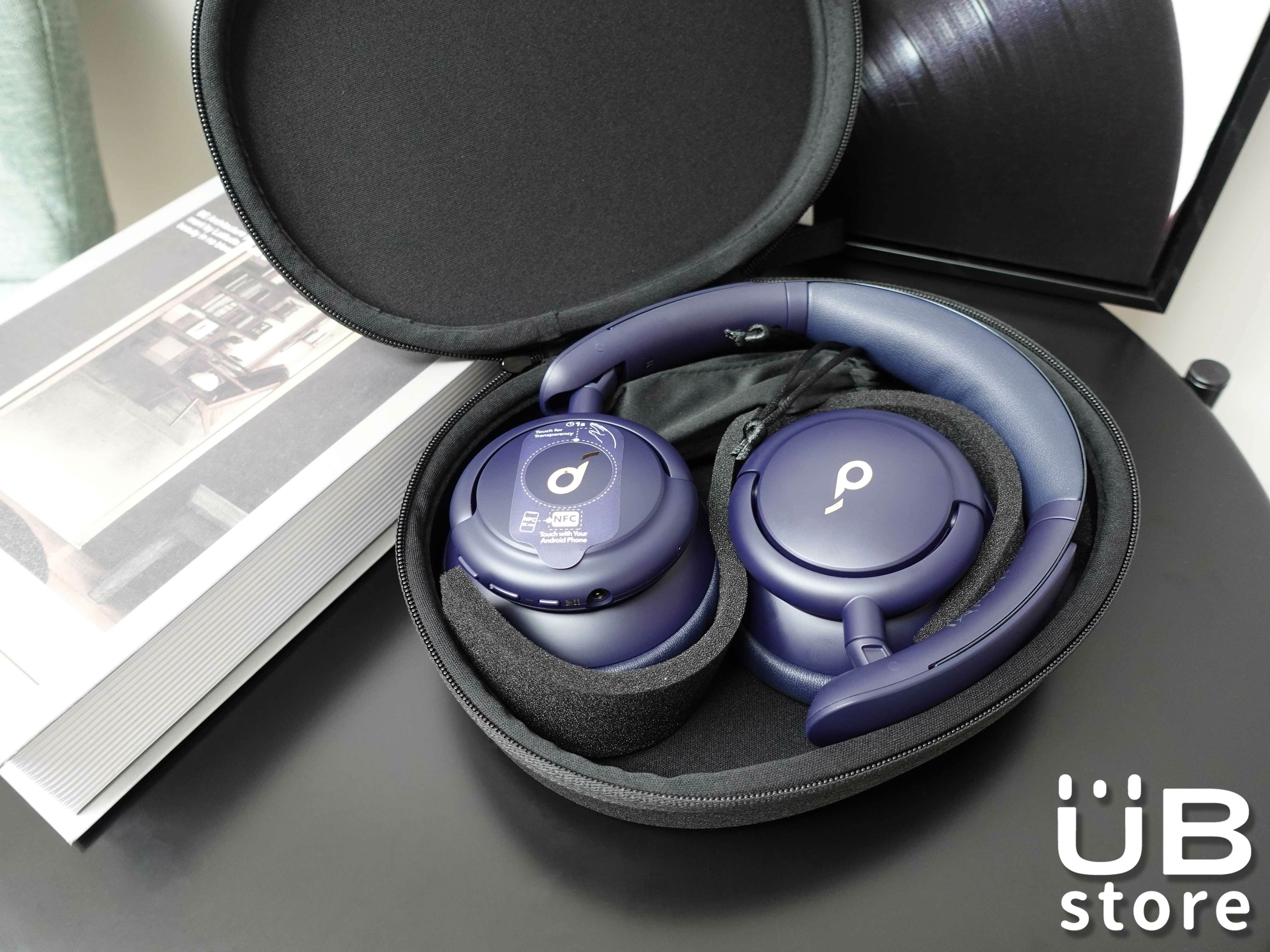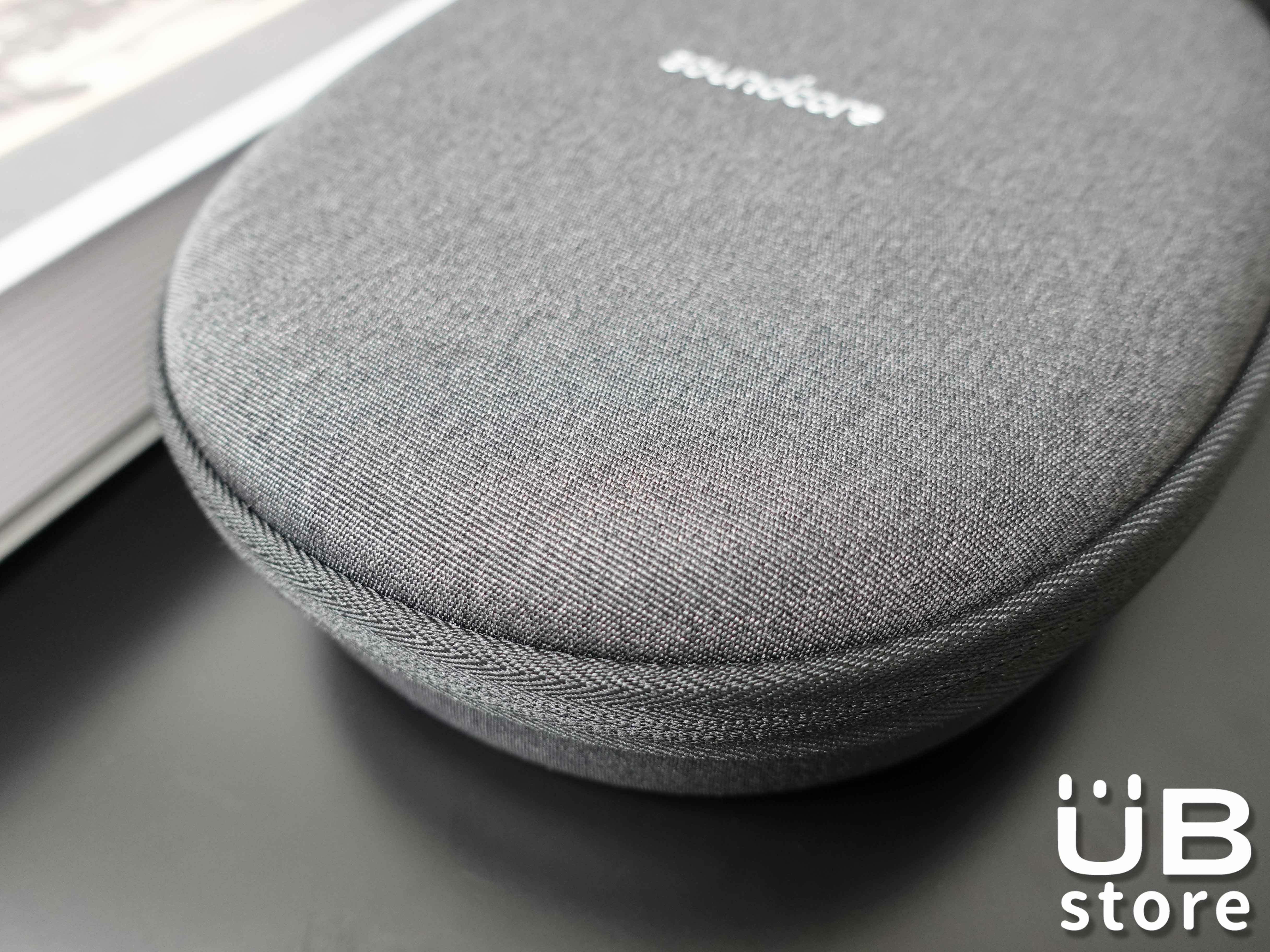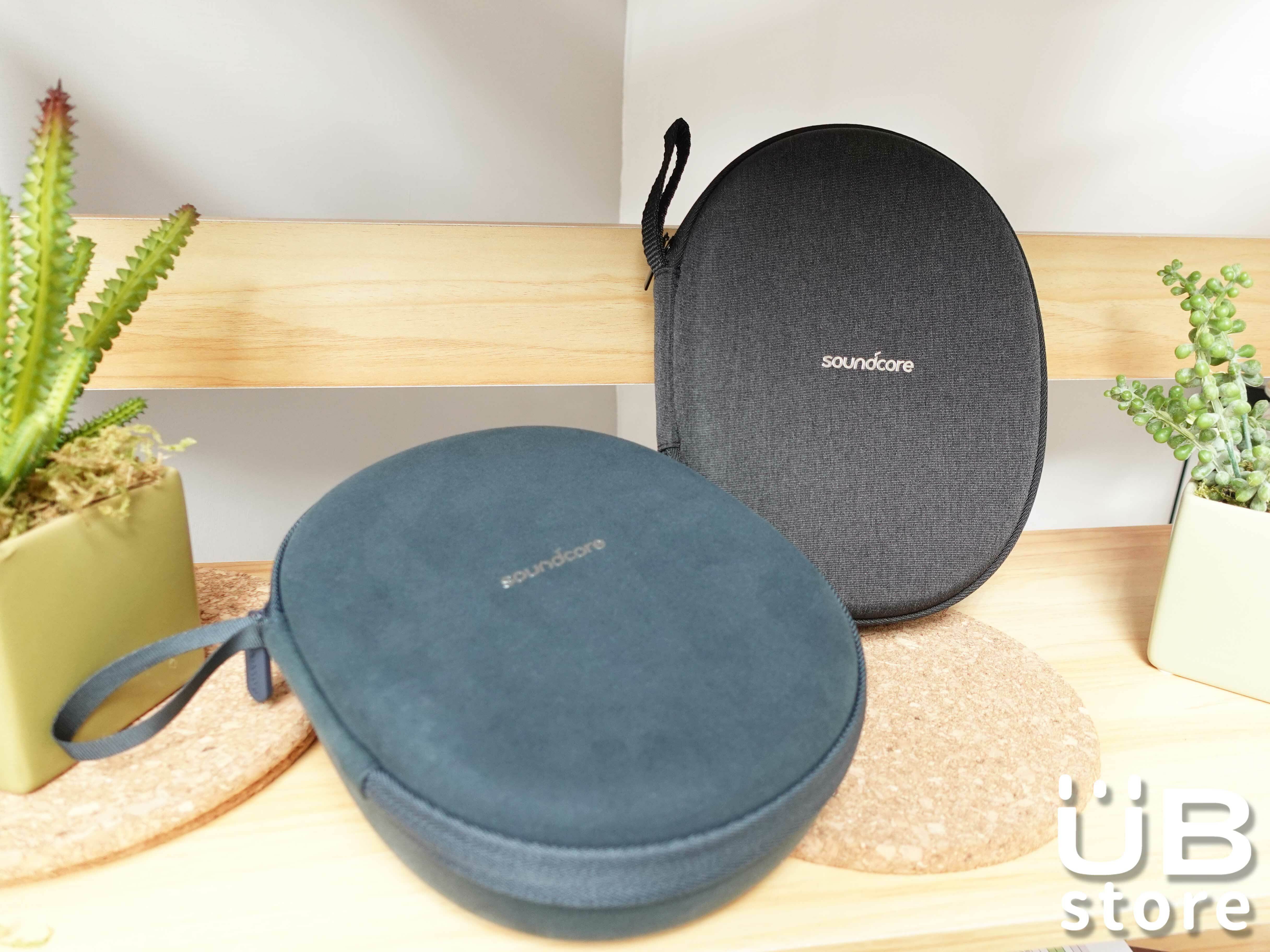 內附的硬殼收納包很有質感,兩款正面都印有銀色反光的Soundcore Logo,旁邊有個吊繩。材質有一些不同,Q30是比較淺灰色,類似布面的材質,Q35 是深灰色絨布材質,拉鍊跟吊環都比較精緻一點。