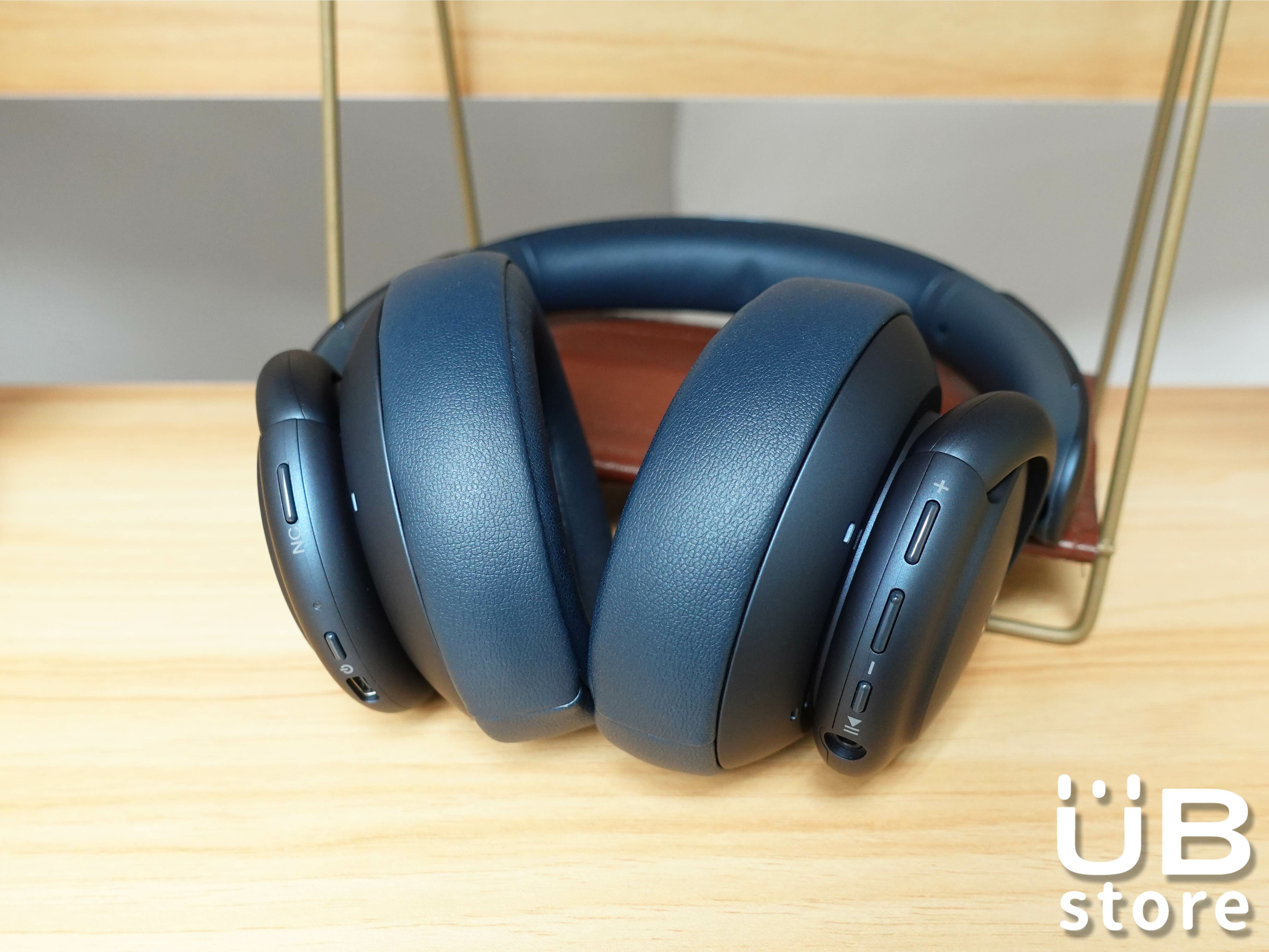 按鍵及充電孔做在耳罩下緣,左側分別有 Type-C充電埠、電源鍵及NC鍵可調整降噪;右邊有音量鍵、暫停/播放鍵及3.5mm耳機孔。 按鍵設計是按下去會有明顯的按鍵反饋,所以就算戴著按,也不擔心找不到按鍵或是有不好按的狀況。還有一個很棒的設計,嗚住右邊耳罩1~2秒,就可以在通透、降噪中切換,方便在與人對話時快速切換,超喜歡這個設計。