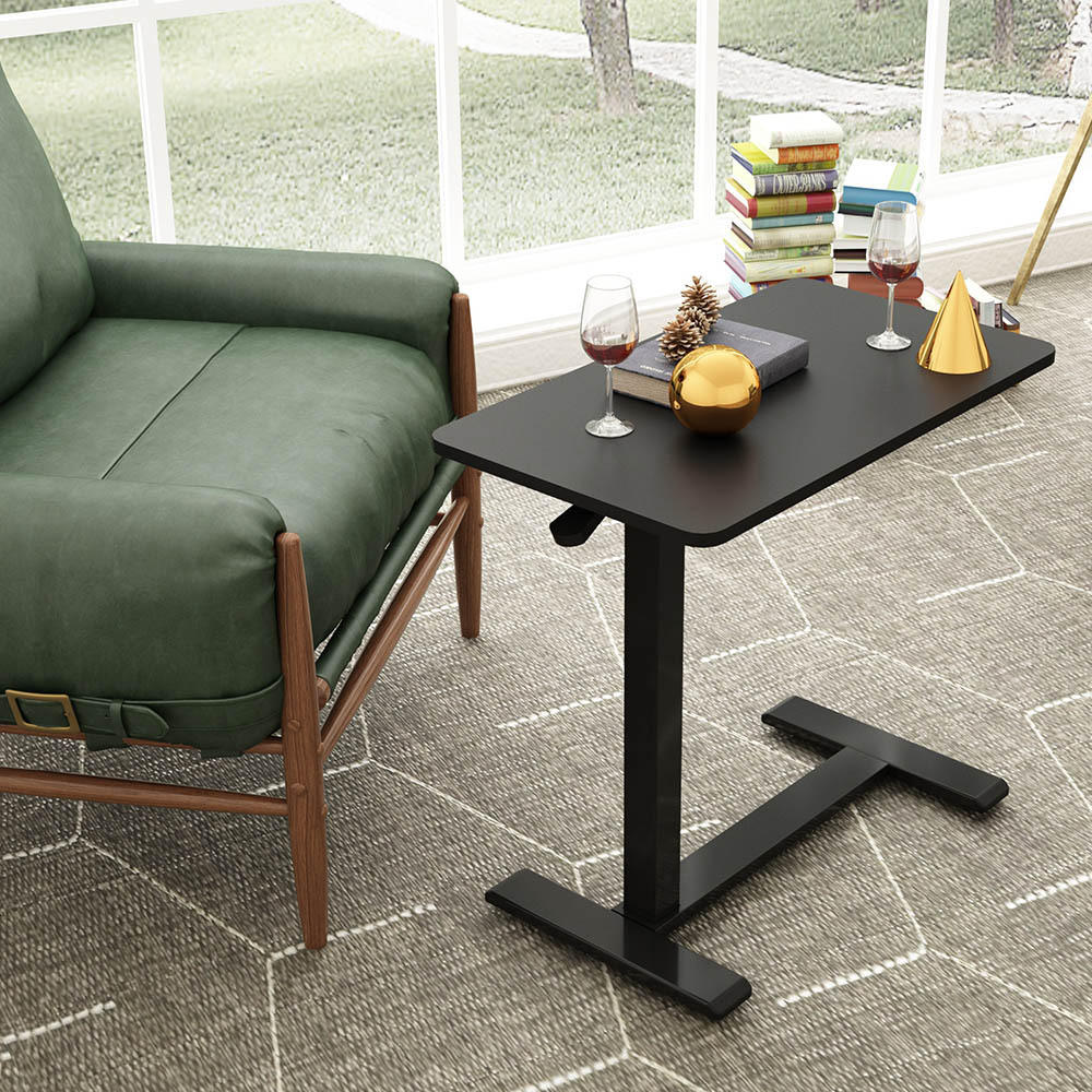 氣壓式升降桌是蠻普遍的升降桌種類,主要透過氣壓棒調整上下氣壓來升降,和我們常見的辦公椅升降是一樣的原理,結構的限制下只會有一支桌腳,承重能力有限,因此他的桌板通常較小,但價格相對便宜。