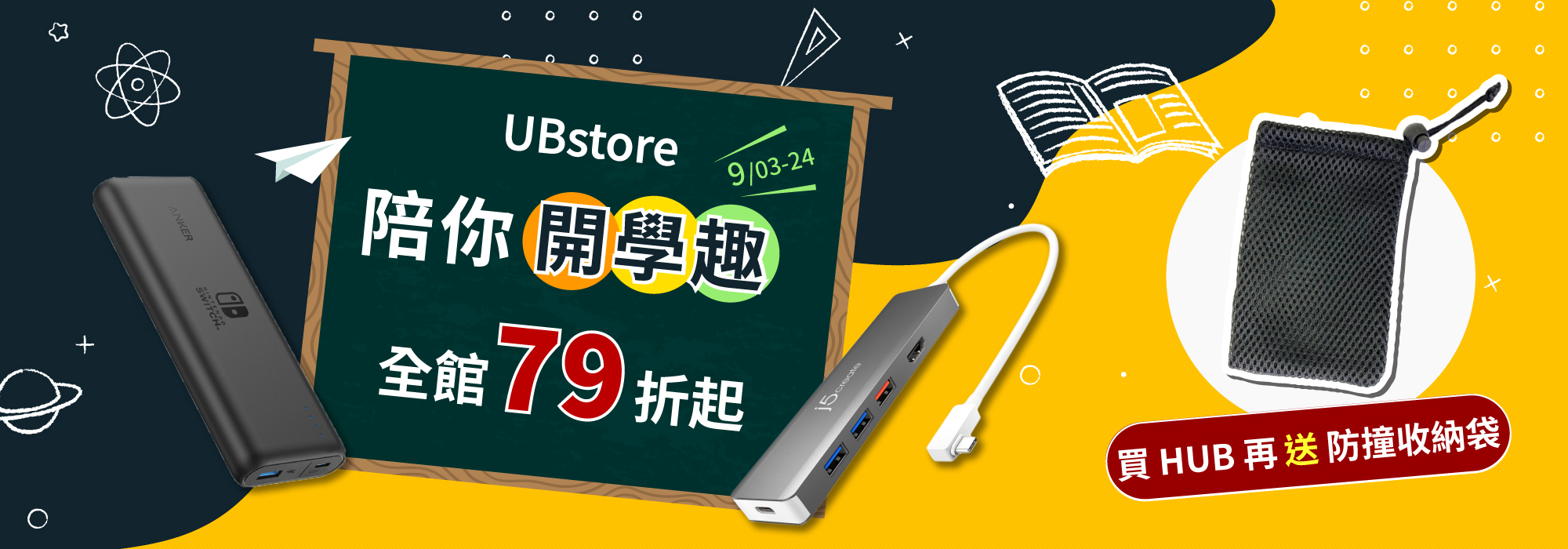 【陪你開學趣】hub 85折up 買再送 防撞收納袋