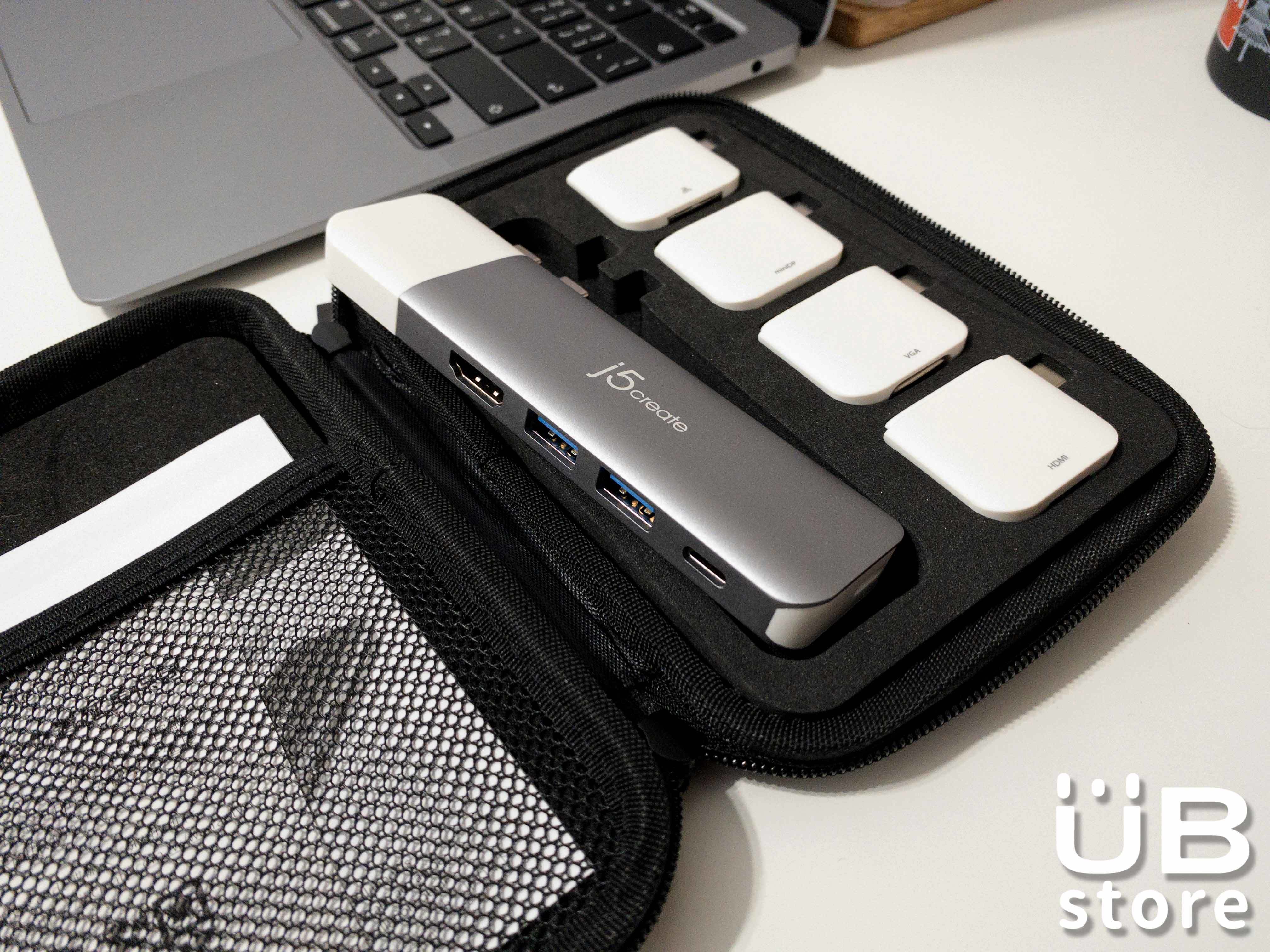 這款是11合1,除了基本會用到的 USB-A、USB-C 孔之外,還有可以外接螢幕的HDMI及TF/SD卡槽。另外白色這一端是磁吸式模組,可以自由替換成網路孔、Mini DP、VGA等插孔,且每款皆可單獨使用,相當方便!