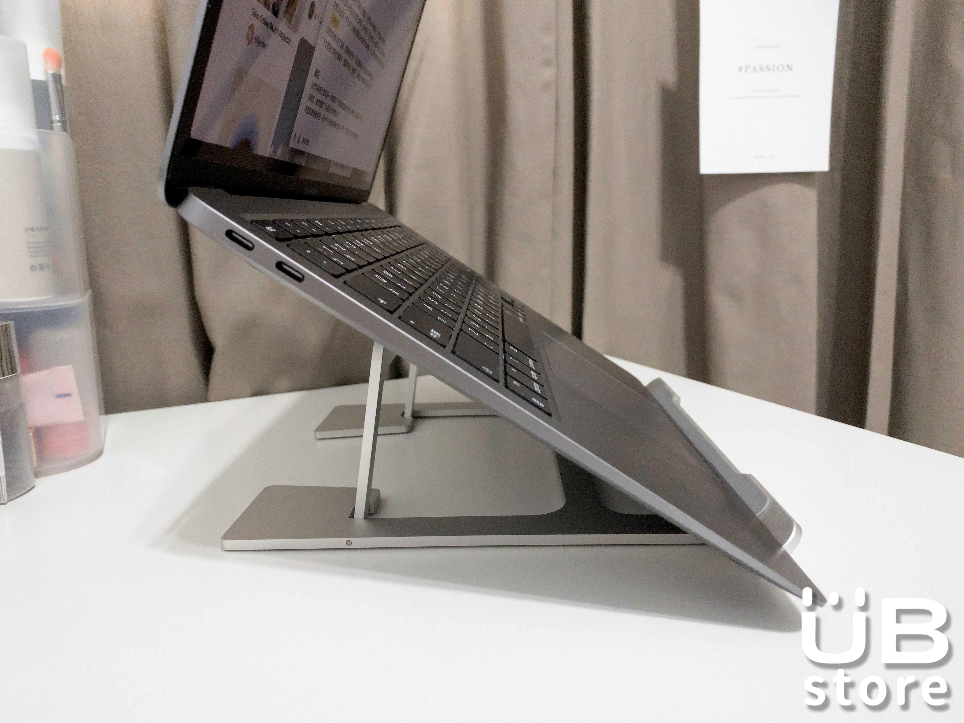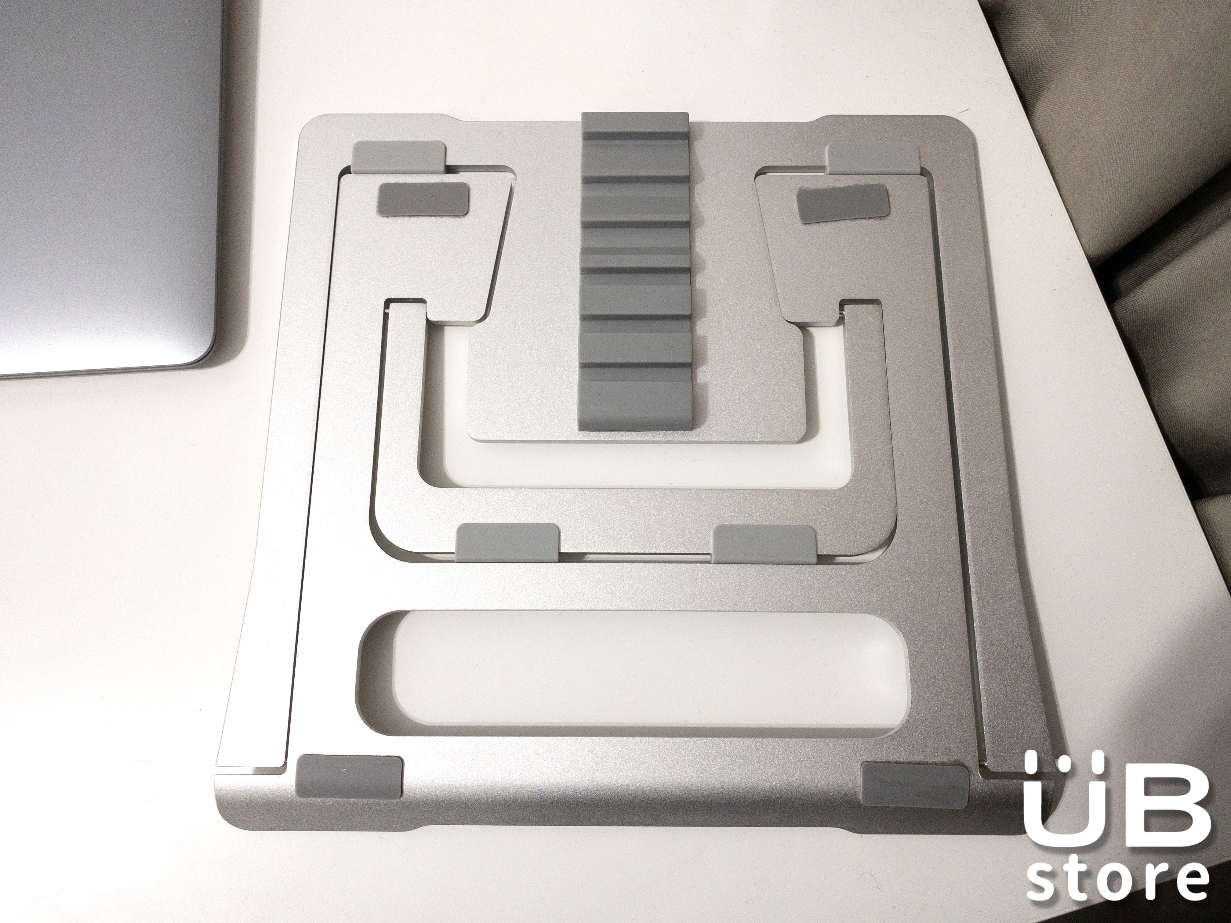 沒想到上網隨意找到了這款筆電支架,我覺得很方便,可以調整六段高低,也能架高幫筆電散熱。 外型跟我的筆電也蠻搭的,都是銀灰色,收摺起來很輕巧,如果之後要攜帶也非常方便!