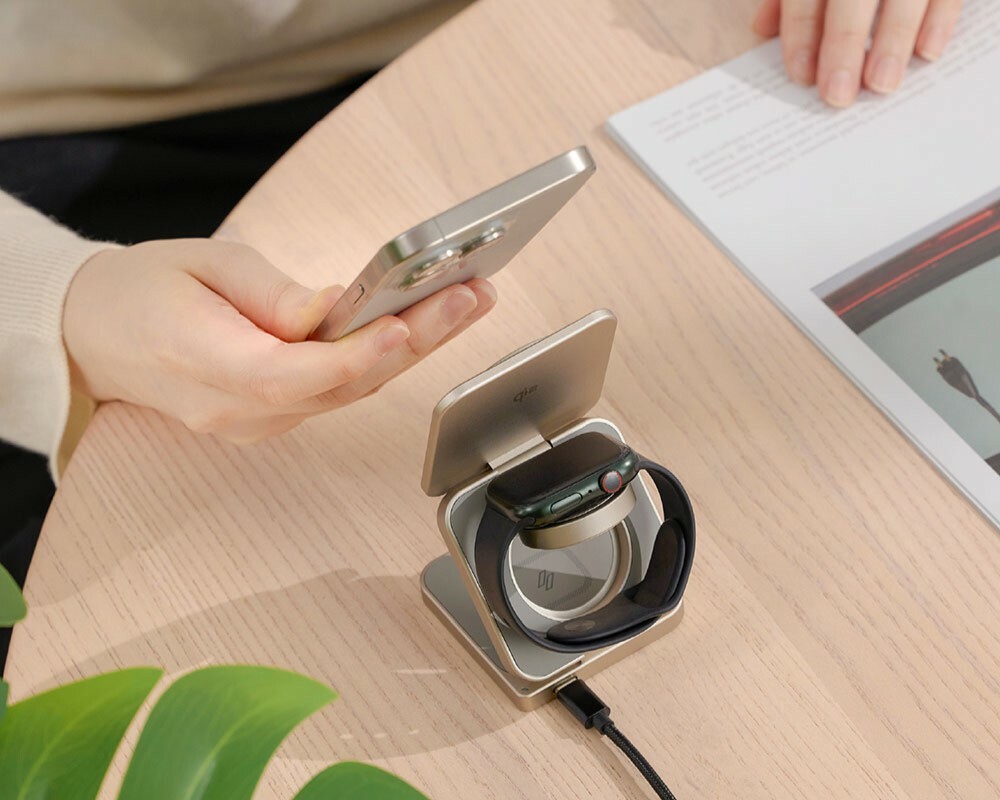亞果元素這款Mag 3 Pro三合一無線充電器是你日常充電的最佳夥伴!搭載Qi2快充模組,充電效率更高,無論是iPhone、Apple Watch還是AirPods,都能快速充飽電。折疊設計方便收納,附上一條USB-C充電線,最大支援15W快速充電。還有內建異物檢測模式,保障充電安全。而且它不僅功能滿滿,產品金屬質感的外觀非常好看!無論放在家裡或辦公空間,都是很有質感的擺飾。