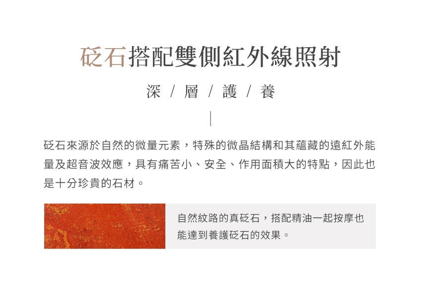 .刮刀部分採用天然礦石砭石,含有自然正能量,使用範圍包含刮痧、按摩臉部及按摩身體部位肌肉。(砭石材料都是天然採取的原石,顏色上稍有不同是正常的,並非瑕疵)