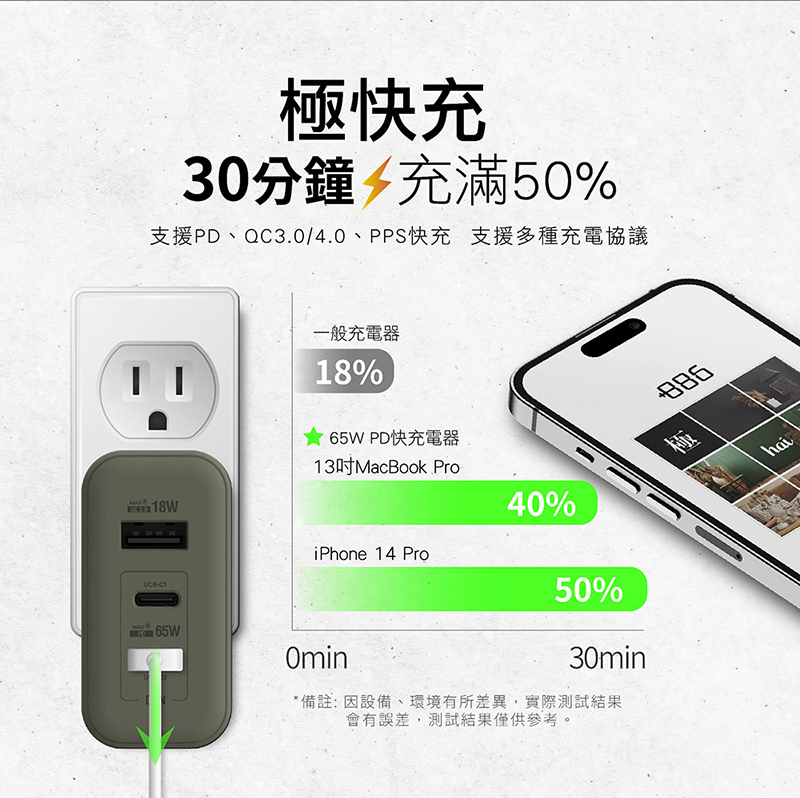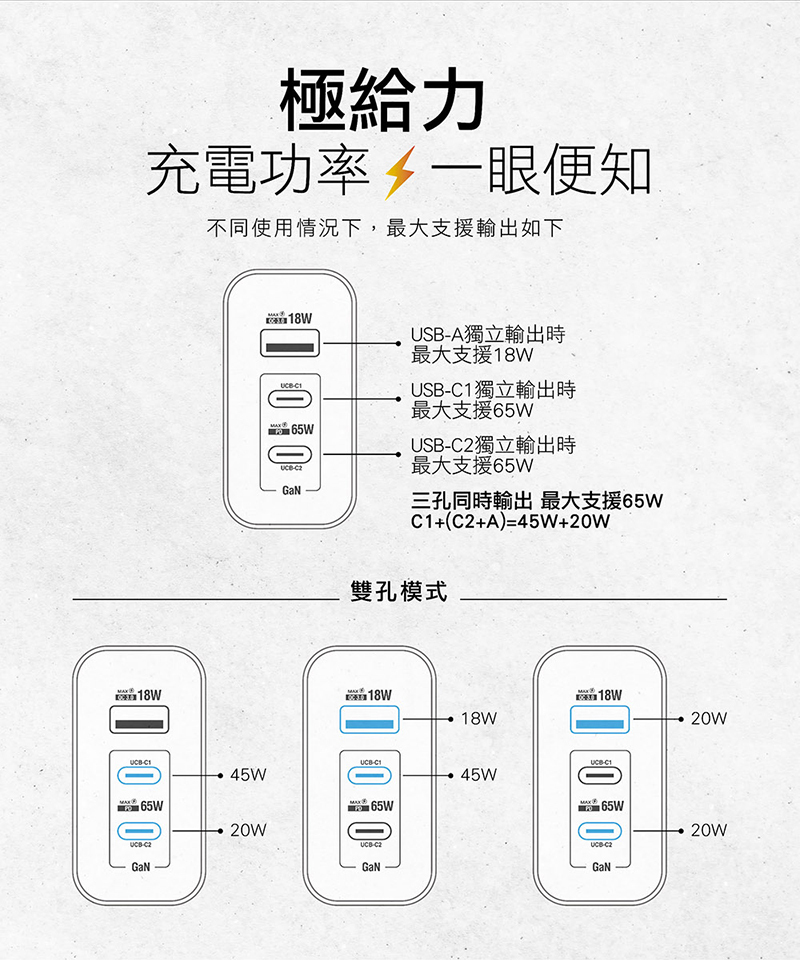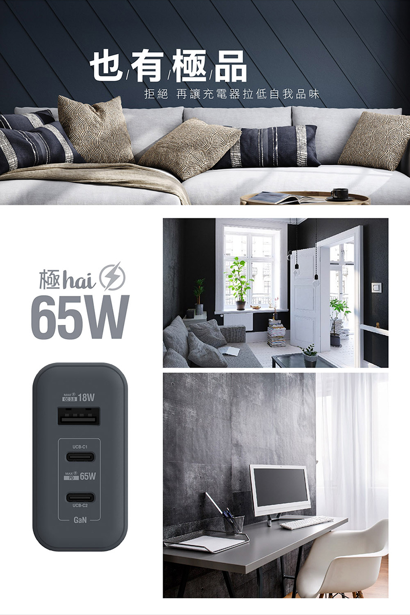 .最高功率65w,支援筆電充電