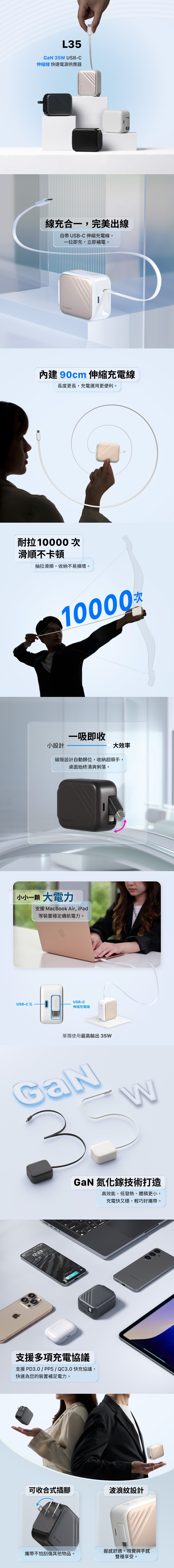 .內建 90 公分 USB-C 伸縮線