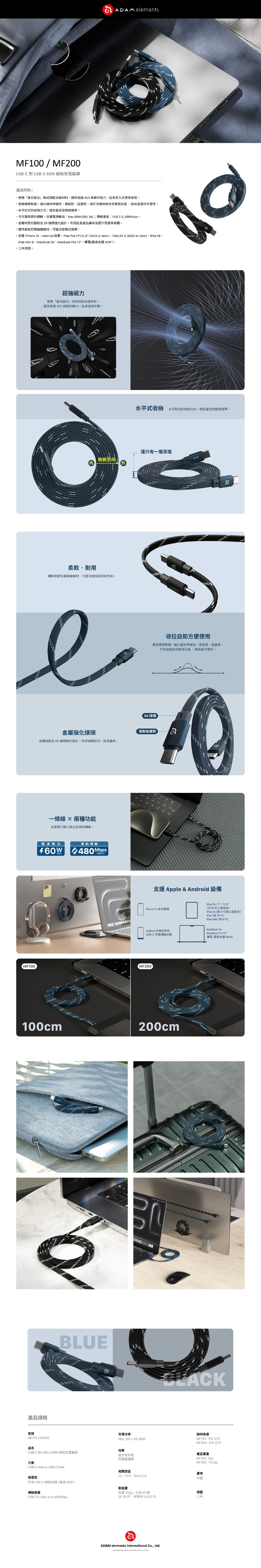 .此為 100cm USB-C 對 USB-C 60W 磁吸充電線