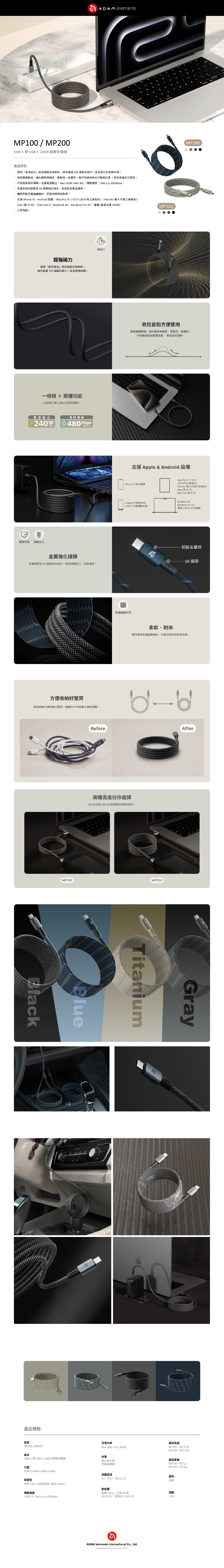 .100cm USB-C to USB-C 240W 磁吸充電線
