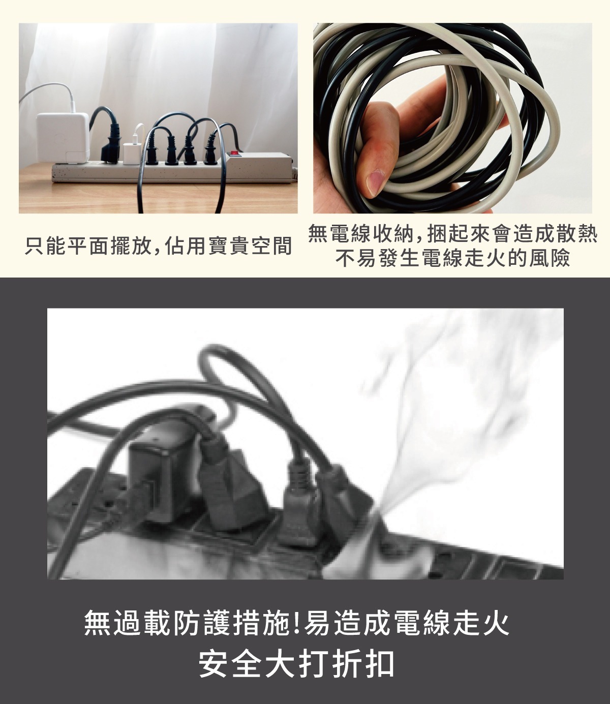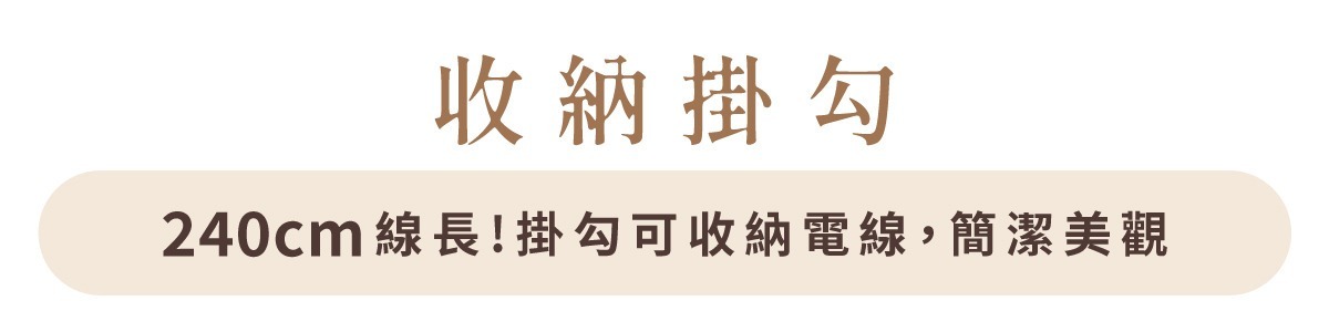 .240公分線長,搭配電線收納掛勾