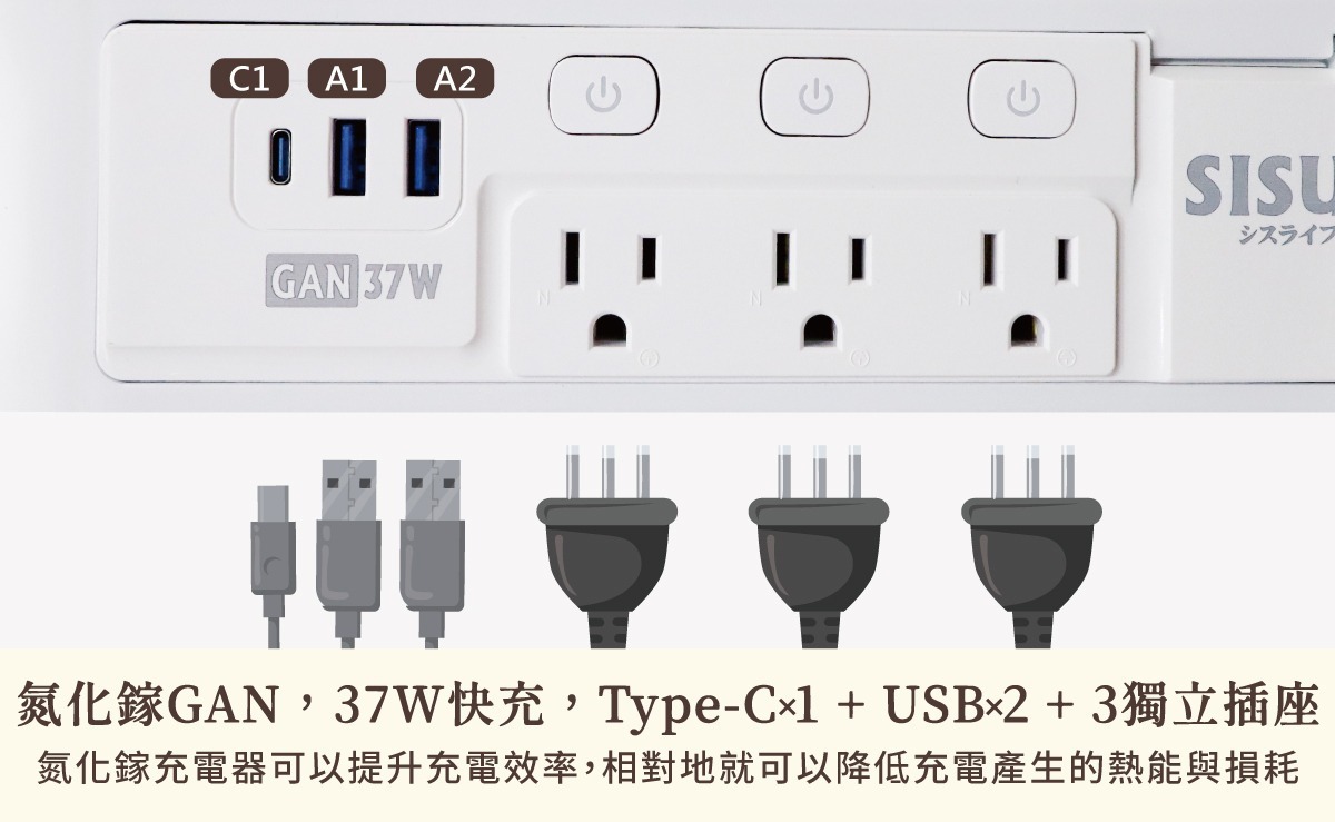 .氮化鎵充電器 2A1C,37W快充支援