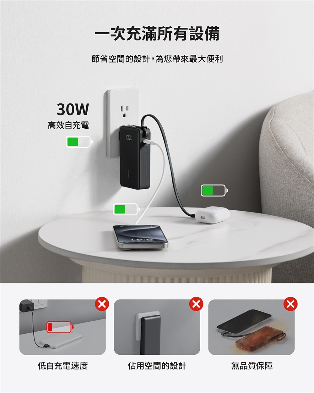 .行動電源、快速充電器、USB-C線集於一體