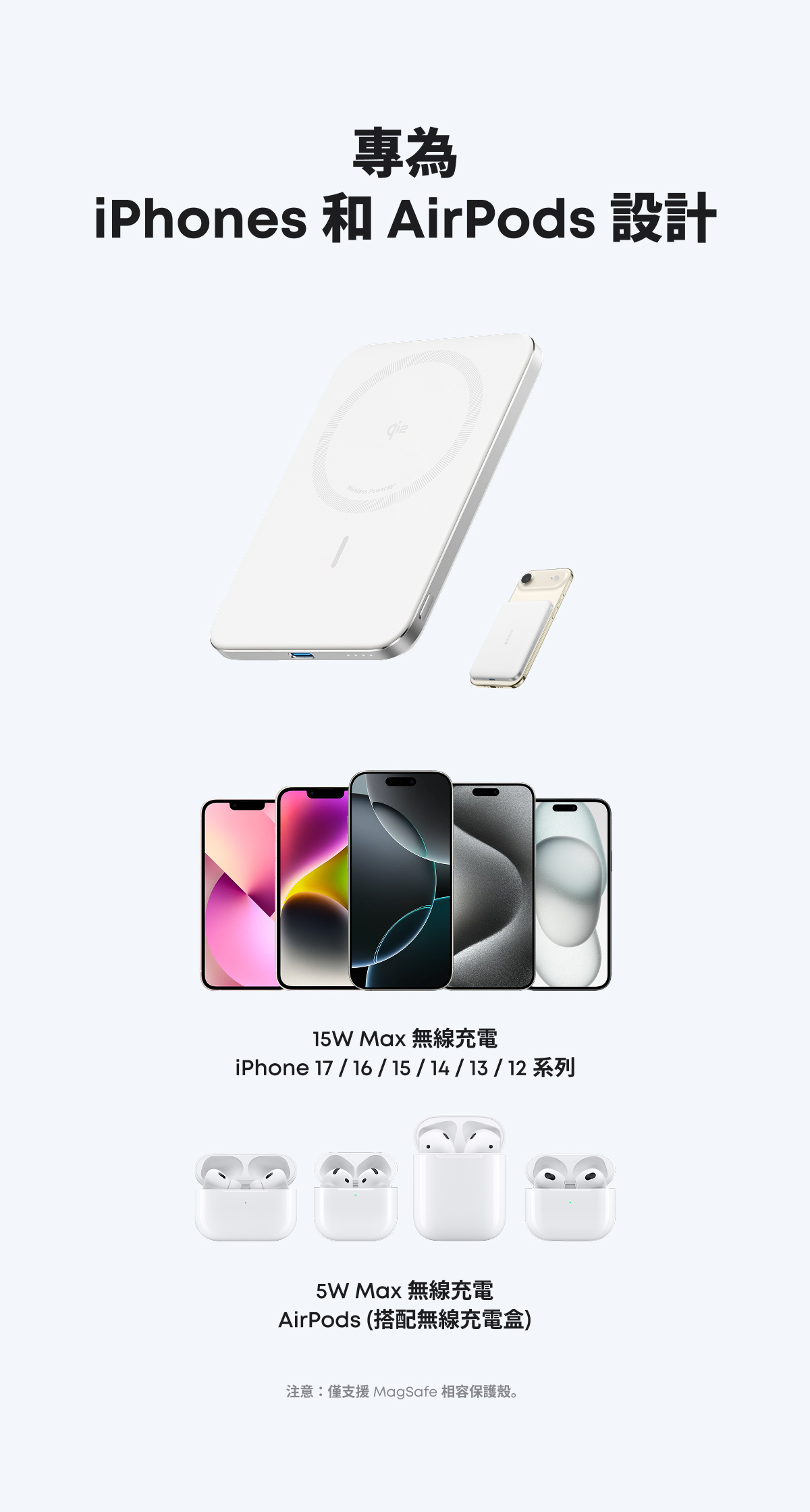 .支援最大15W Qi2 認證磁吸無線充電