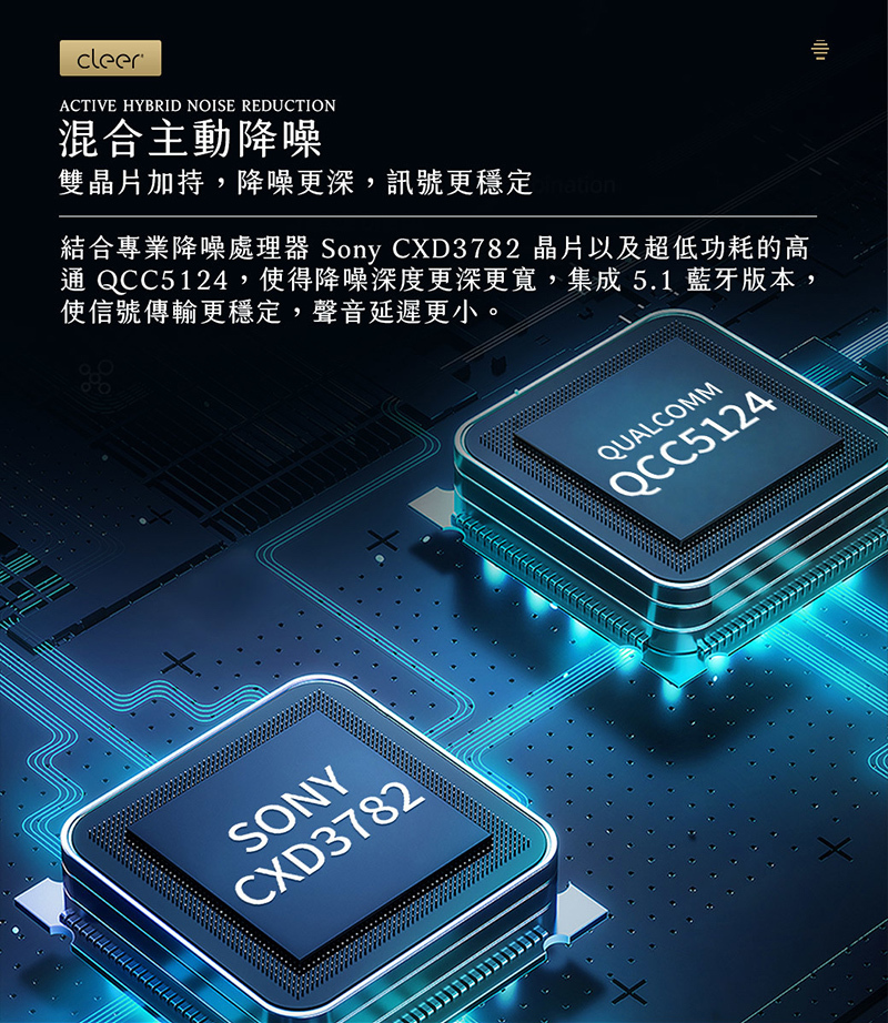.Sony CXD降噪晶片+高通QCC低功率晶片