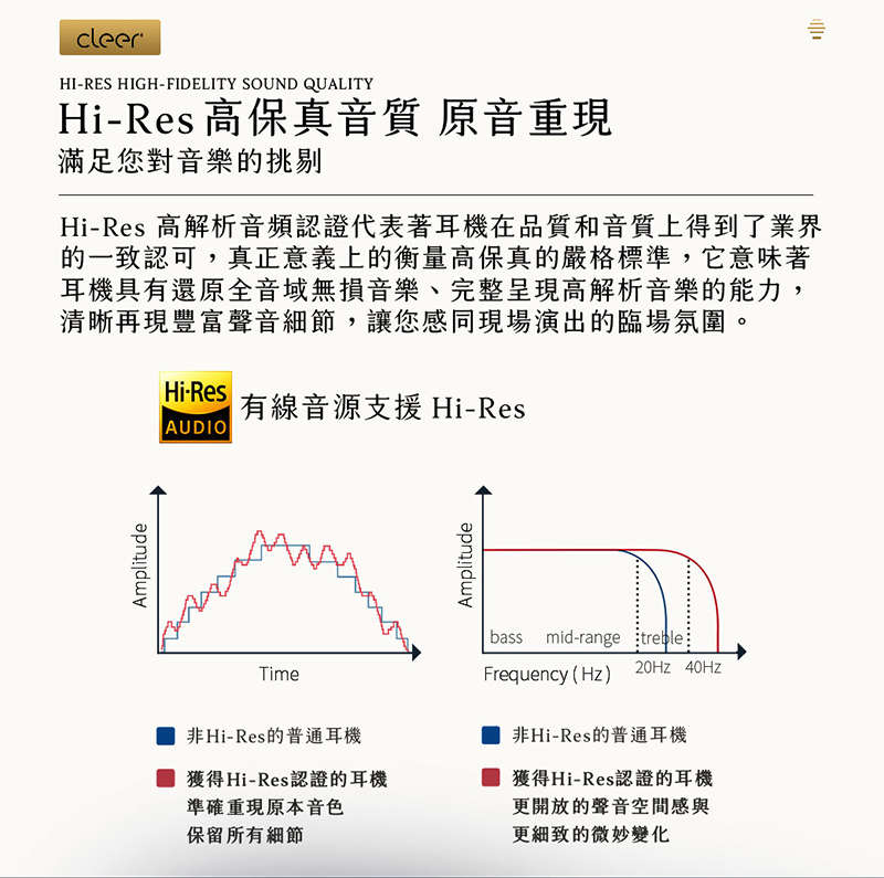 .Hi-Res高保真音質,清晰呈現聲音細節