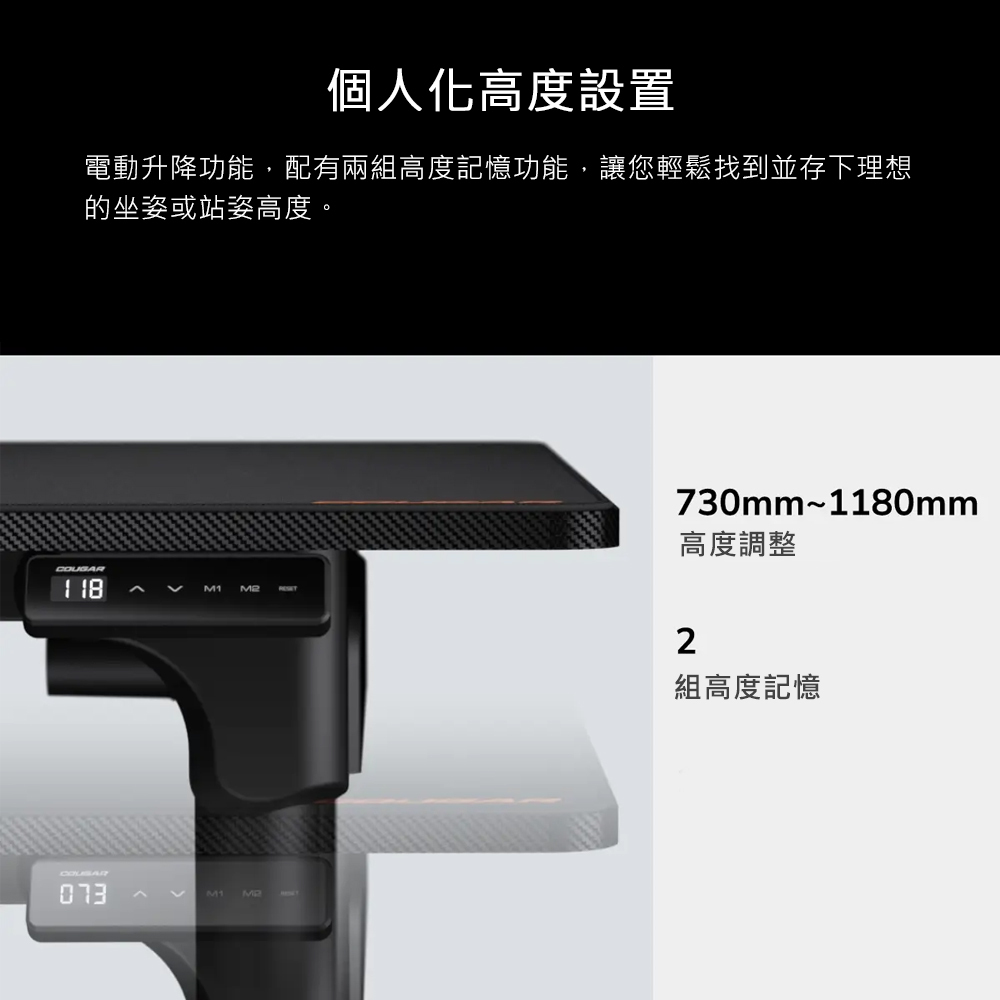 • 電動高度調節,可記憶兩組高度