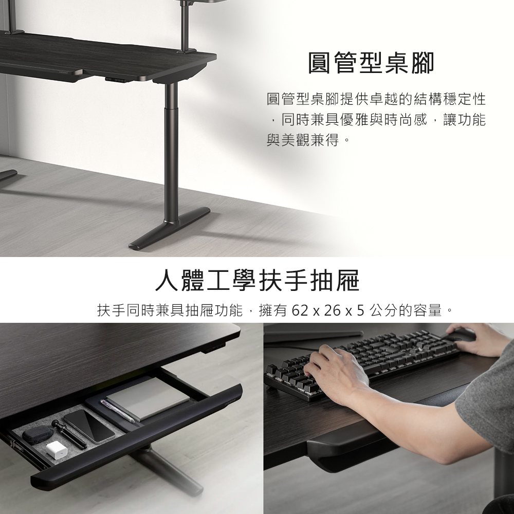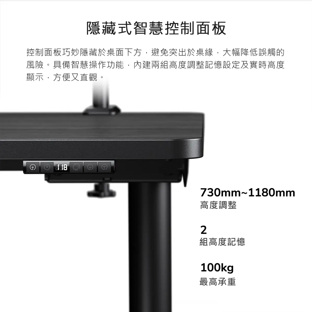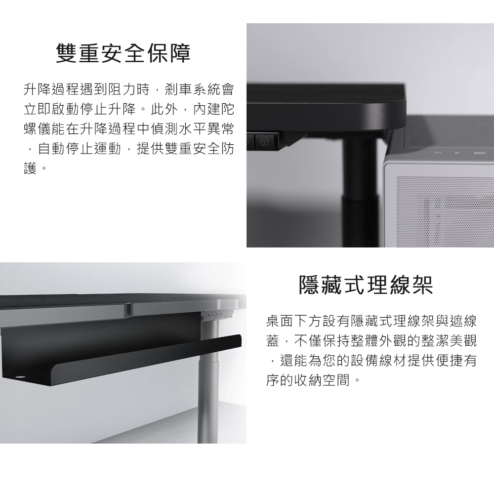 • 雙電動馬達升降時更順暢且安靜,提供兩組記憶高度