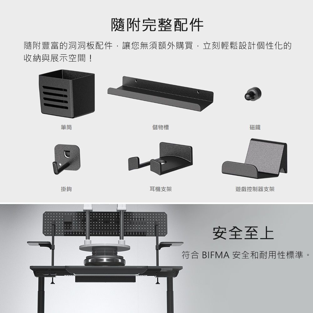 • 多功能洞洞板配件,充分利用垂直空間收納與展示