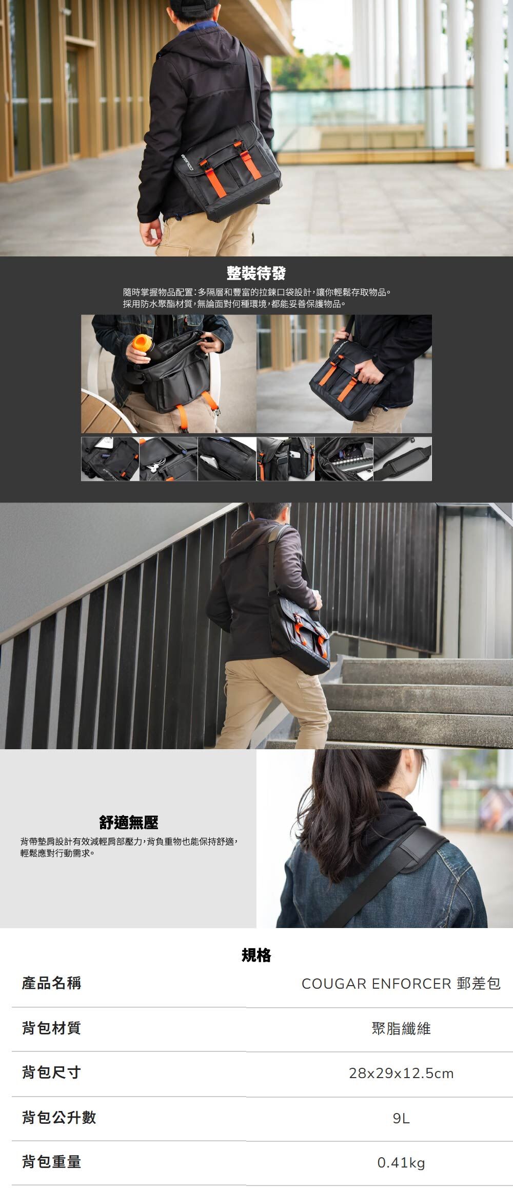 .為了提高機動性,Enforcer 郵差包專為高機動性設計