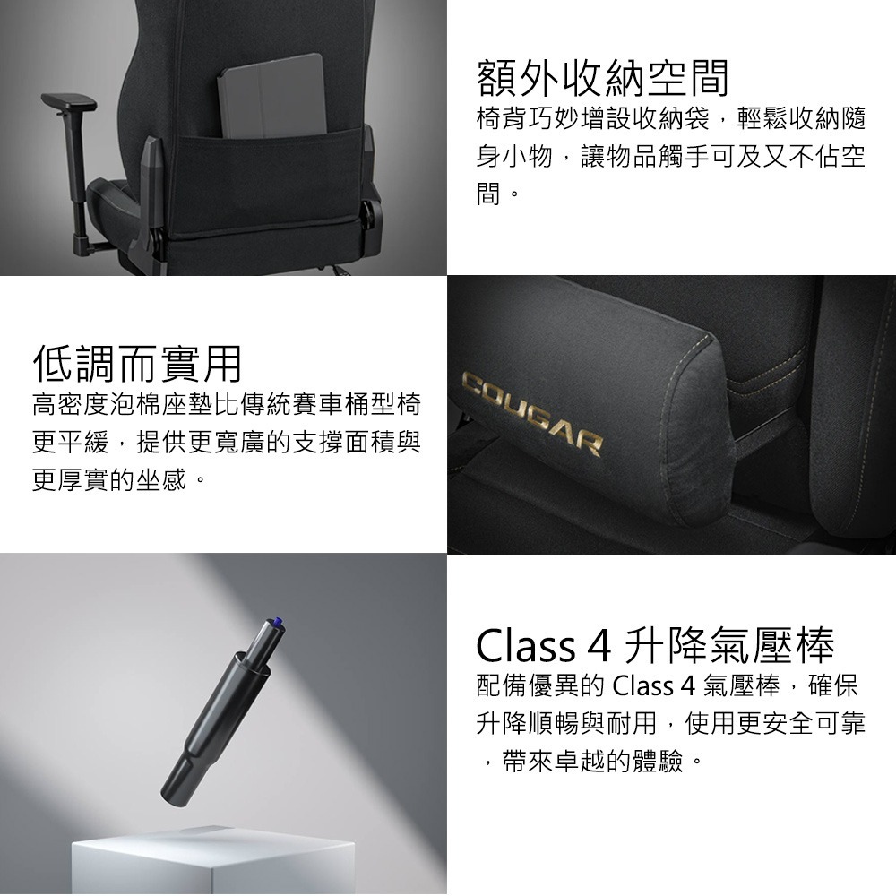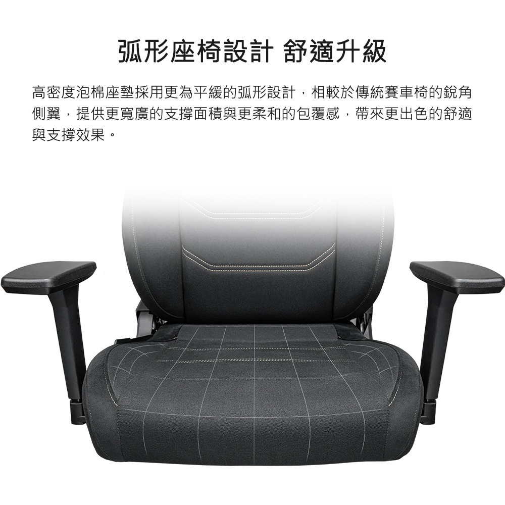 • 弧形座椅設計加強支撐與包覆