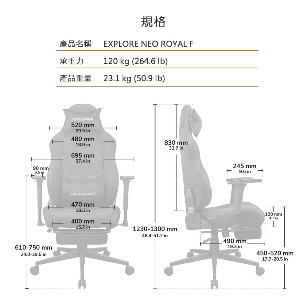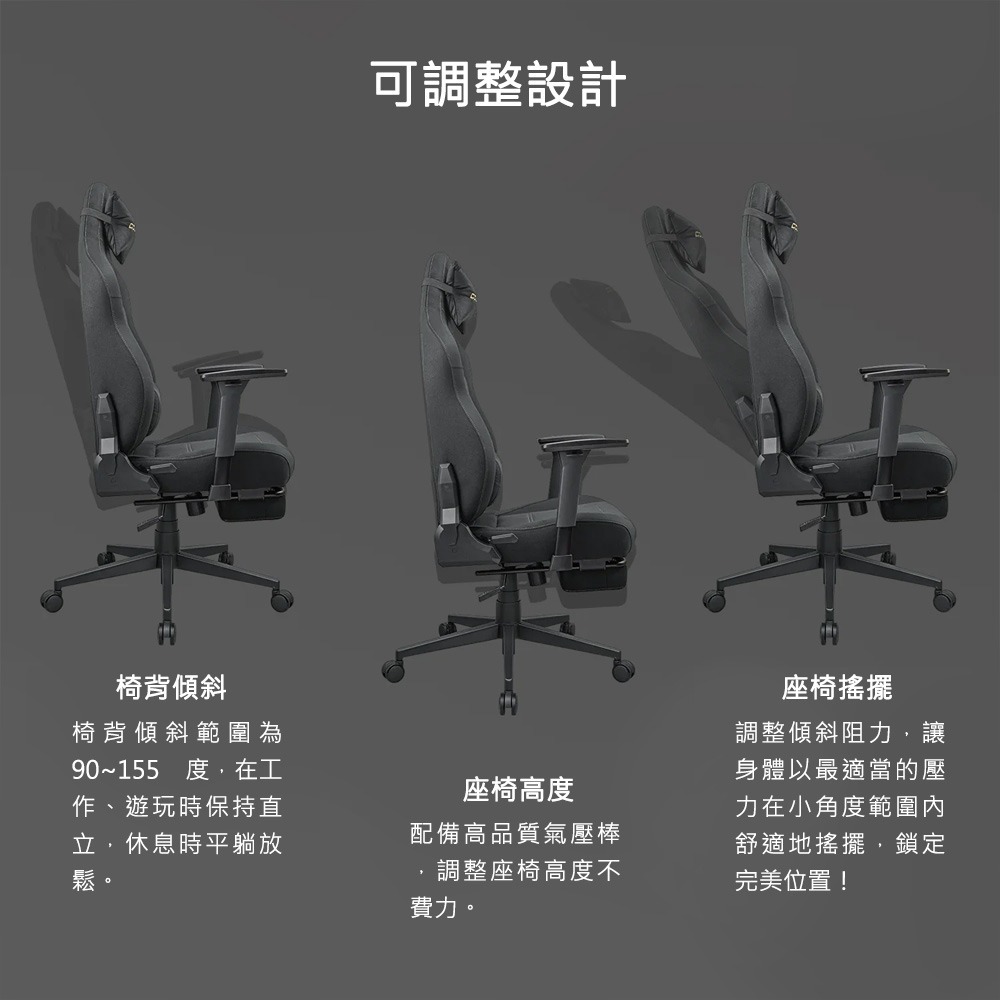 • 3D 可調扶手,自由調整最舒適角度