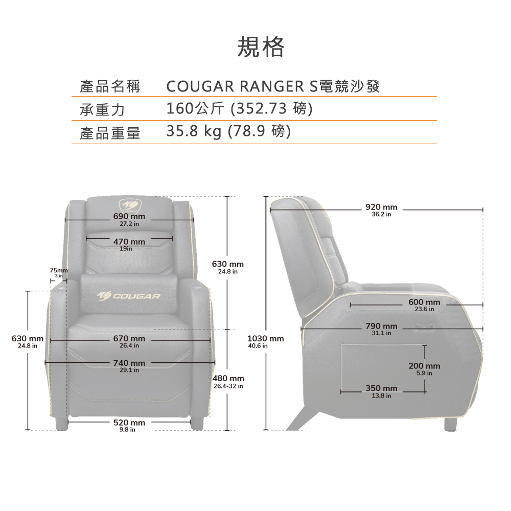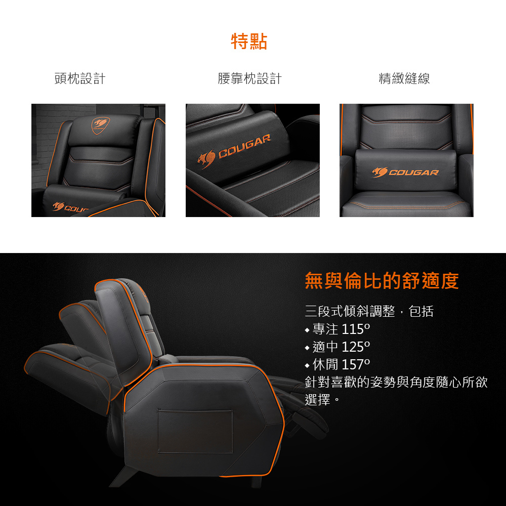 • 前後可調三段式傾斜調整(115º/125º/157º)
