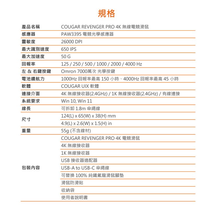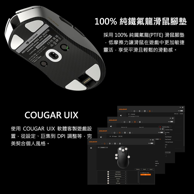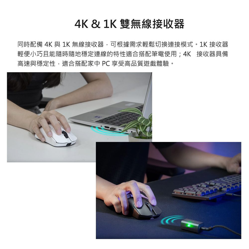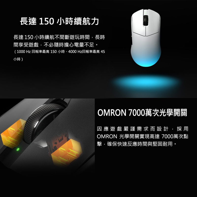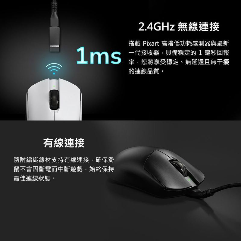 • 隨附 PTFE 滑鼠腳墊及握把貼