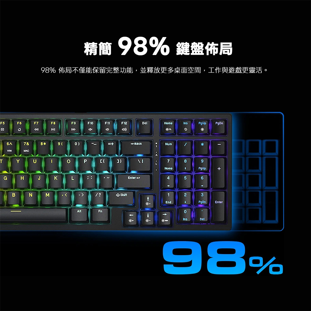 .精簡緊湊的 98% 鍵盤佈局