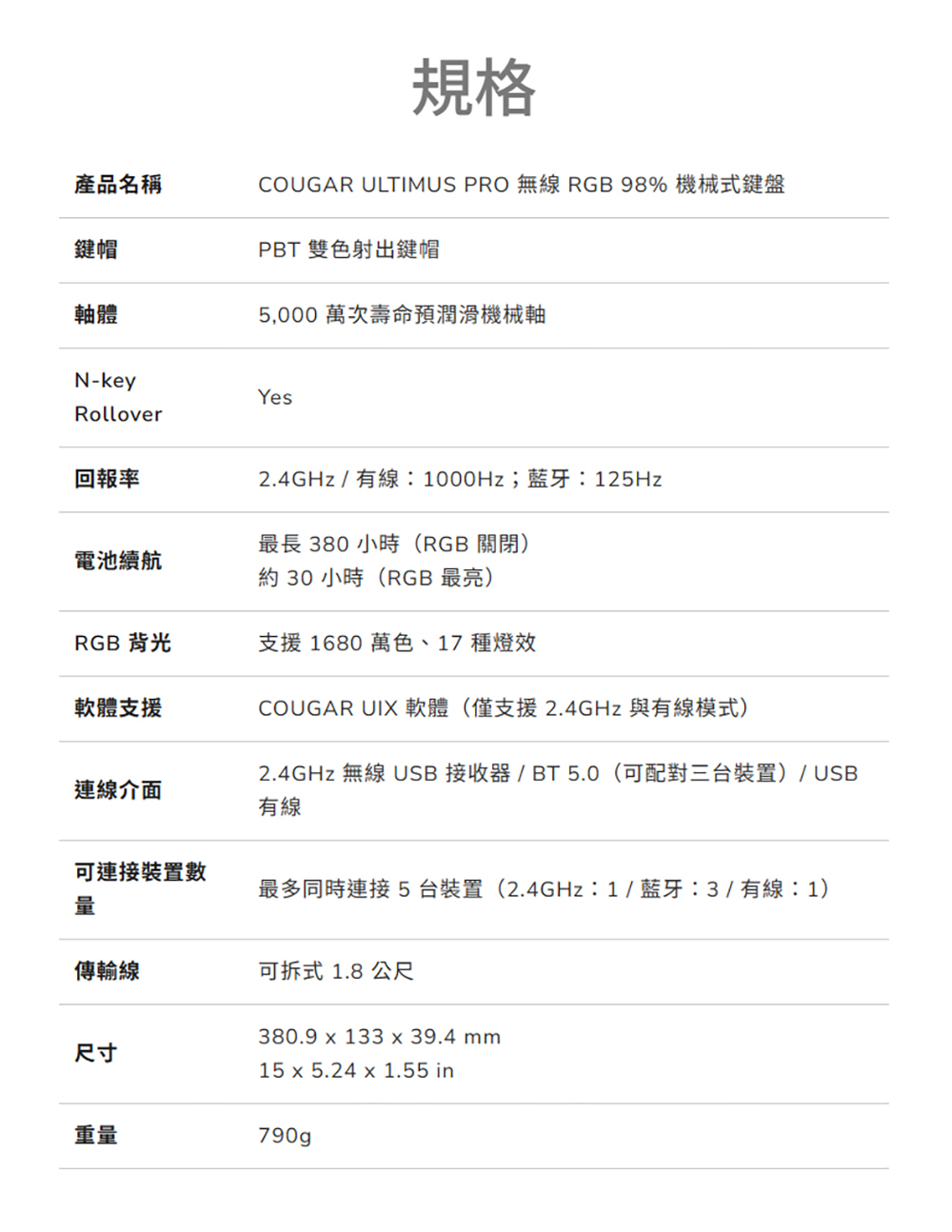 產品規格