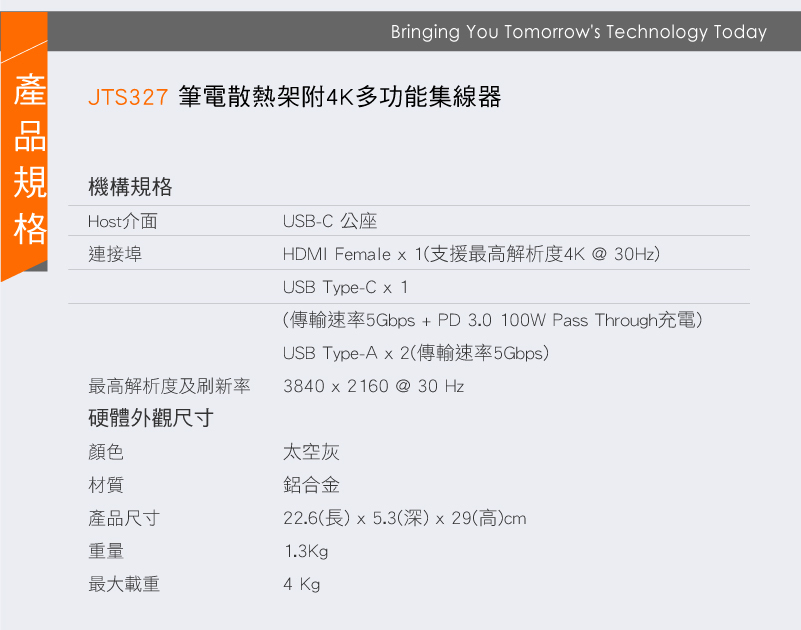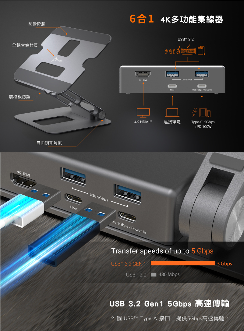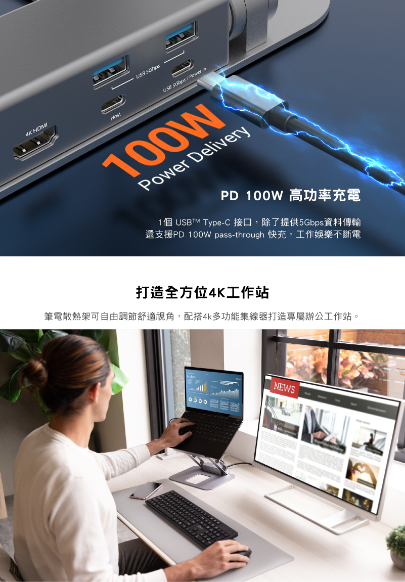 USB Type-C Power in x 1 (傳輸速率5Gbps + PD 3.0 100W Pass Through充電)