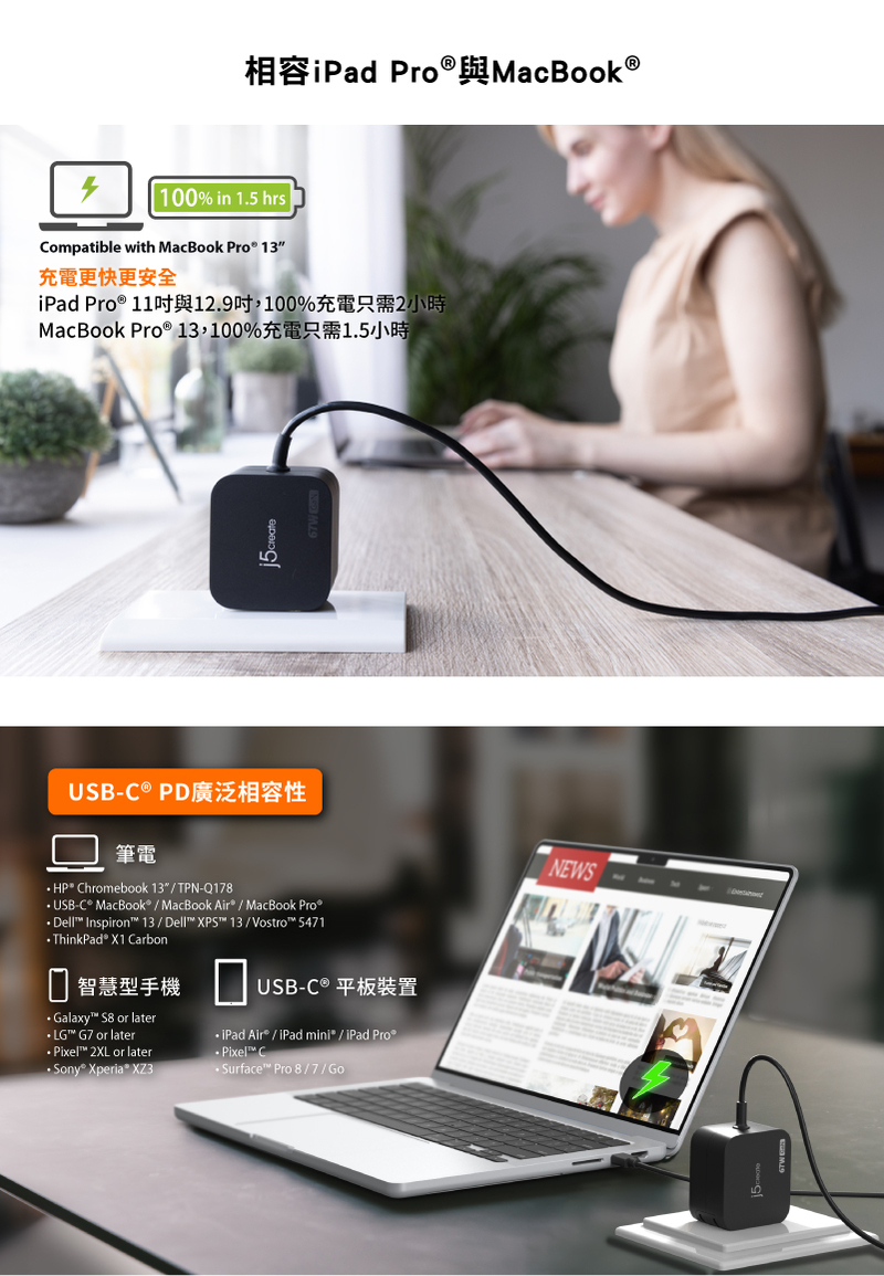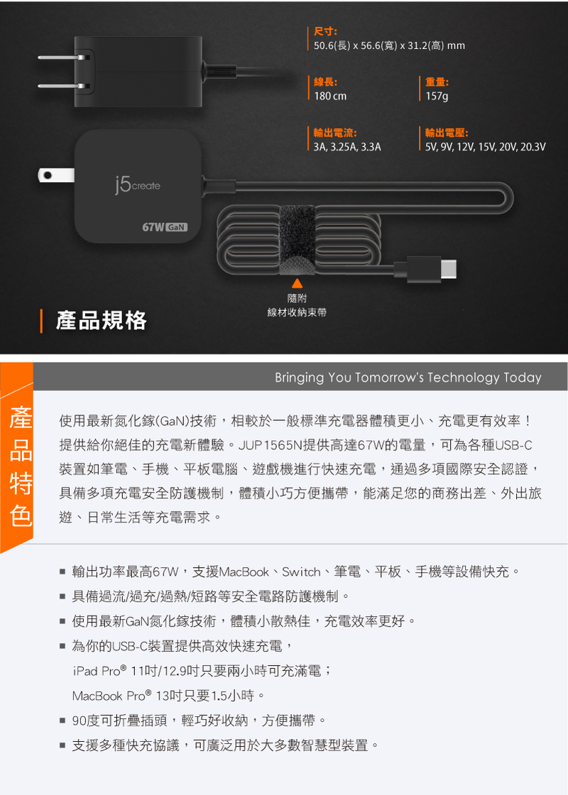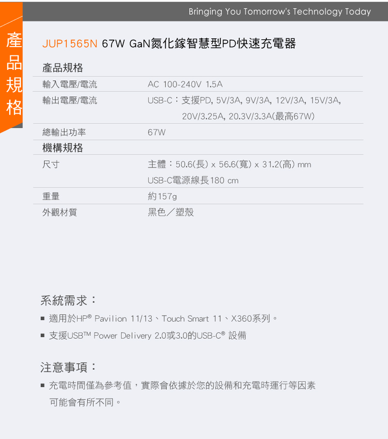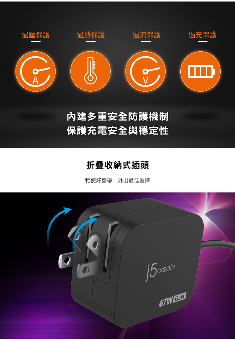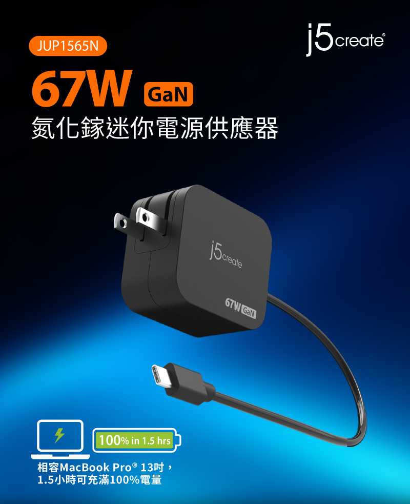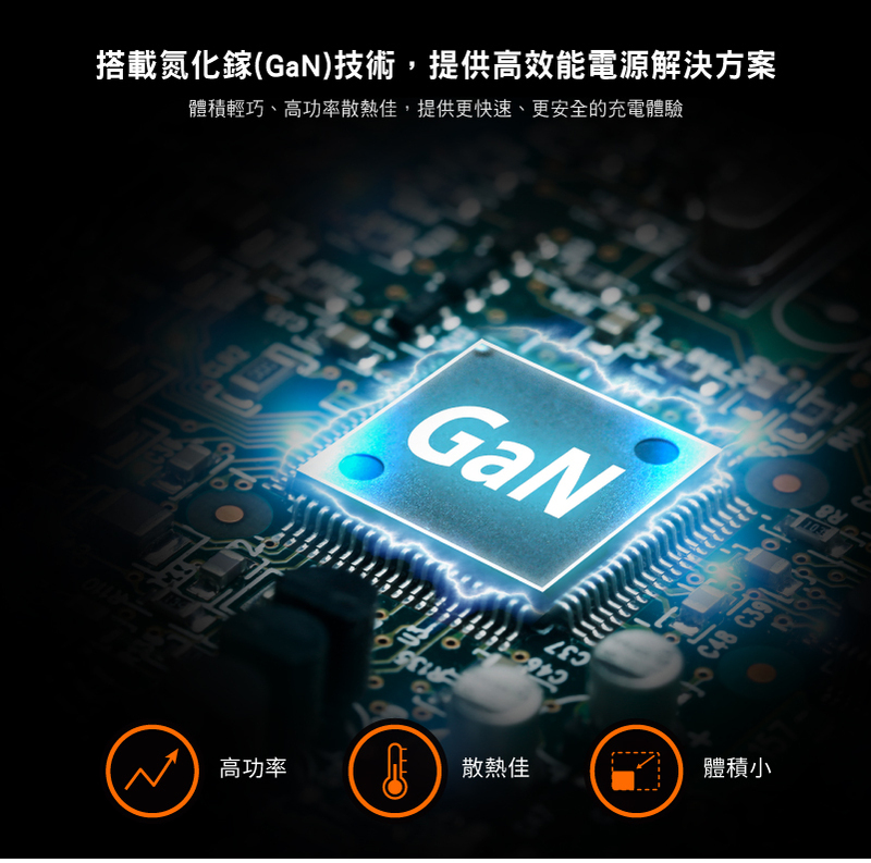 .使用最新GaN氮化鎵技術,體積小散熱佳