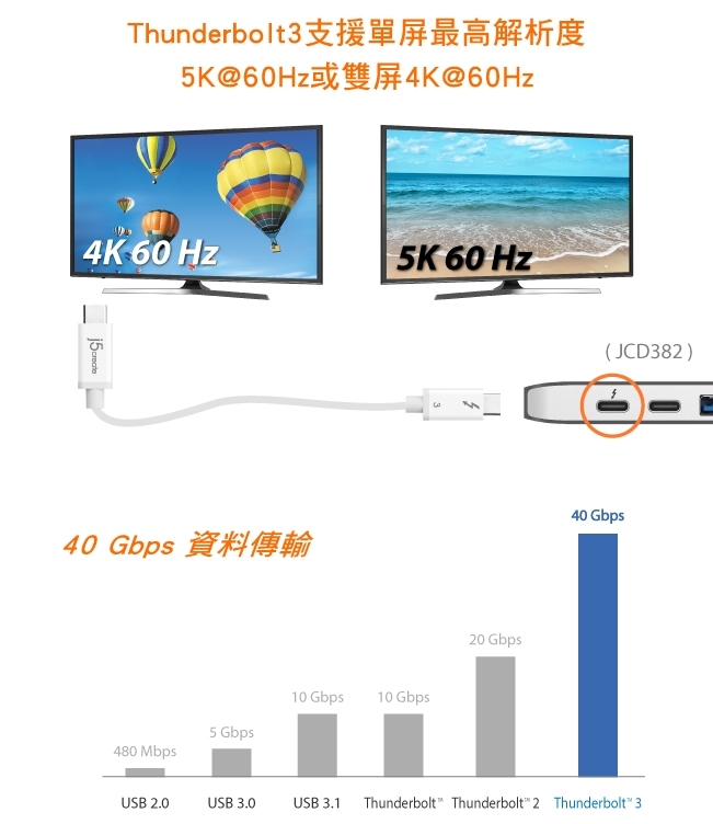 .Thunderbolt支持單屏5K@60Hz或雙屏4K@60Hz