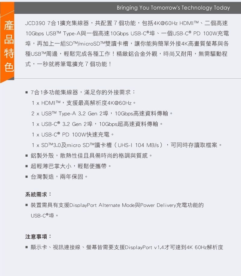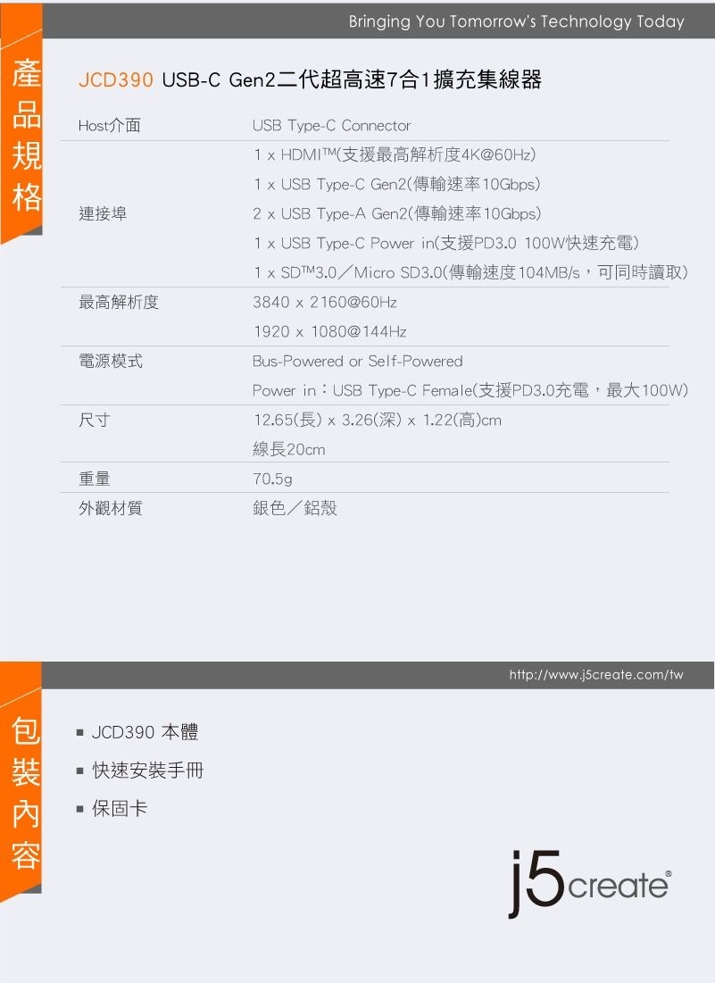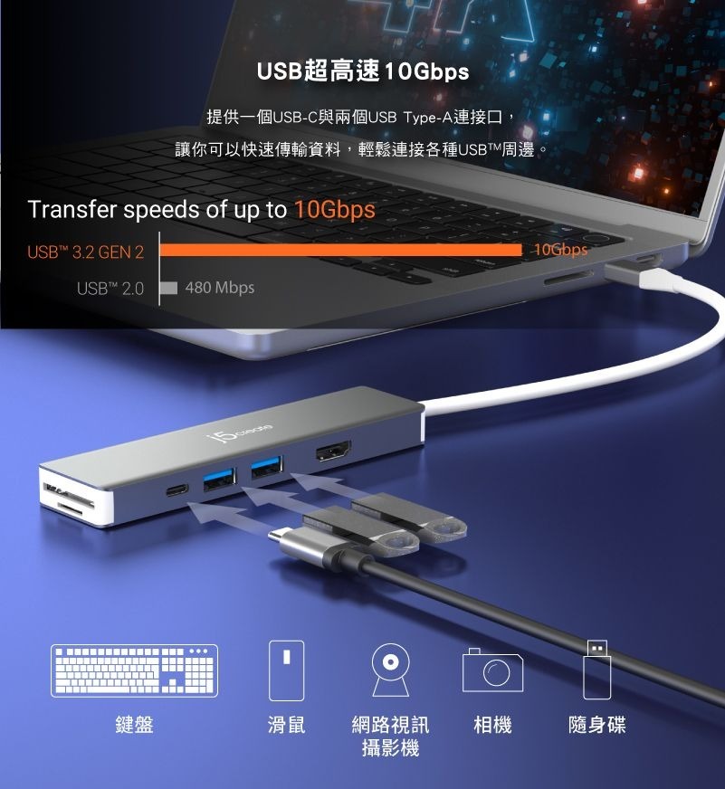 1 x USB-C® 3.2 Gen 2埠,10Gbps超高速資料傳輸