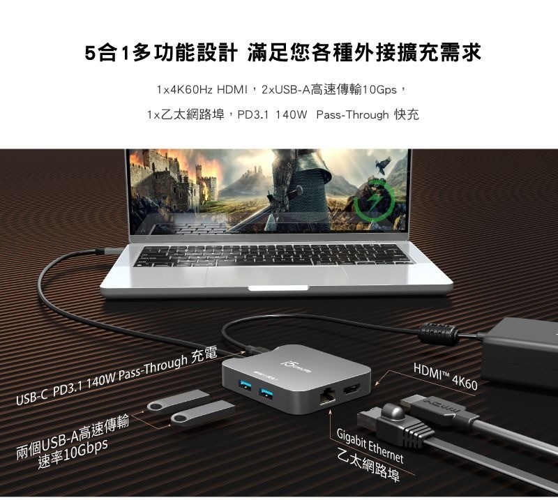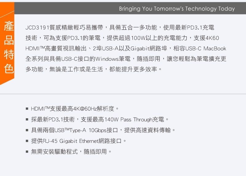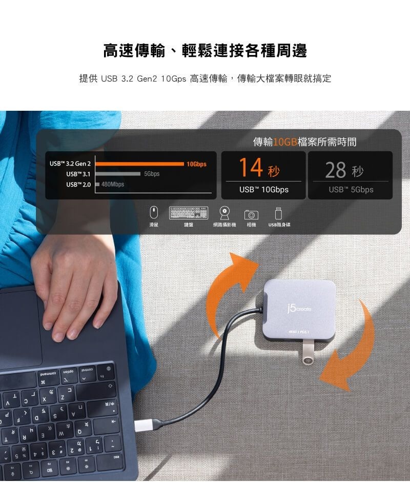 .提供兩個USB Type-A支援10Gbps高速資料傳輸
