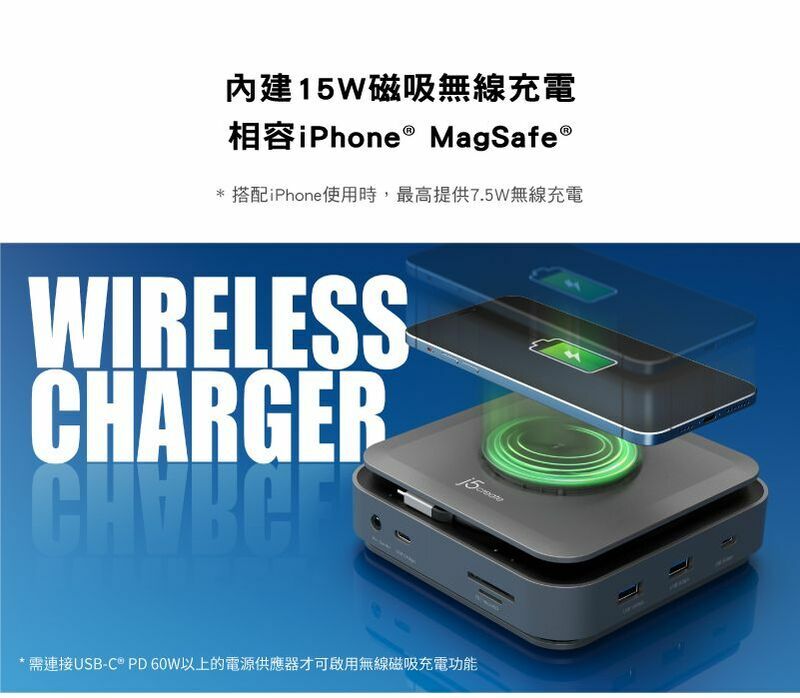 .內建磁吸無線充電器,充電功率最高可達15W