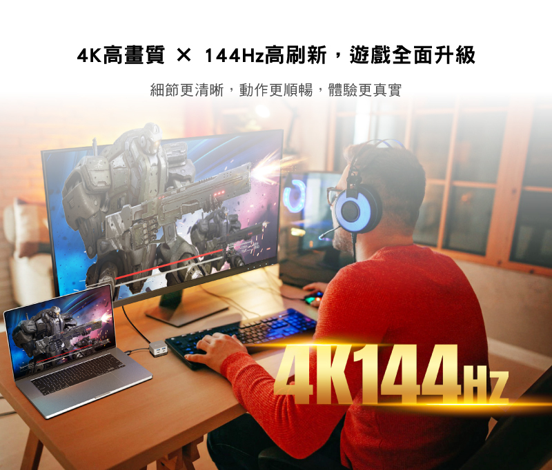 .HDMI支援最高4K@144Hz解析度