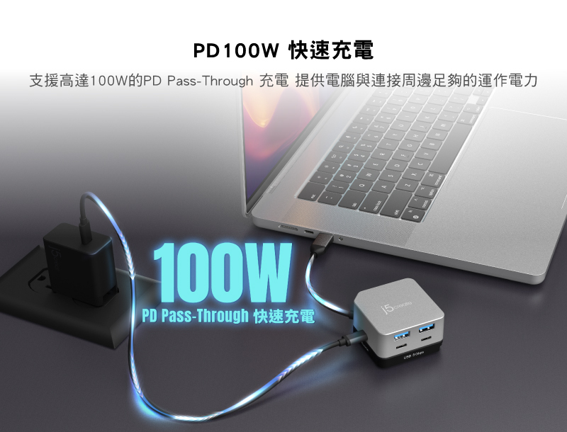 .採PD3.0技術,支援最高100W 充電