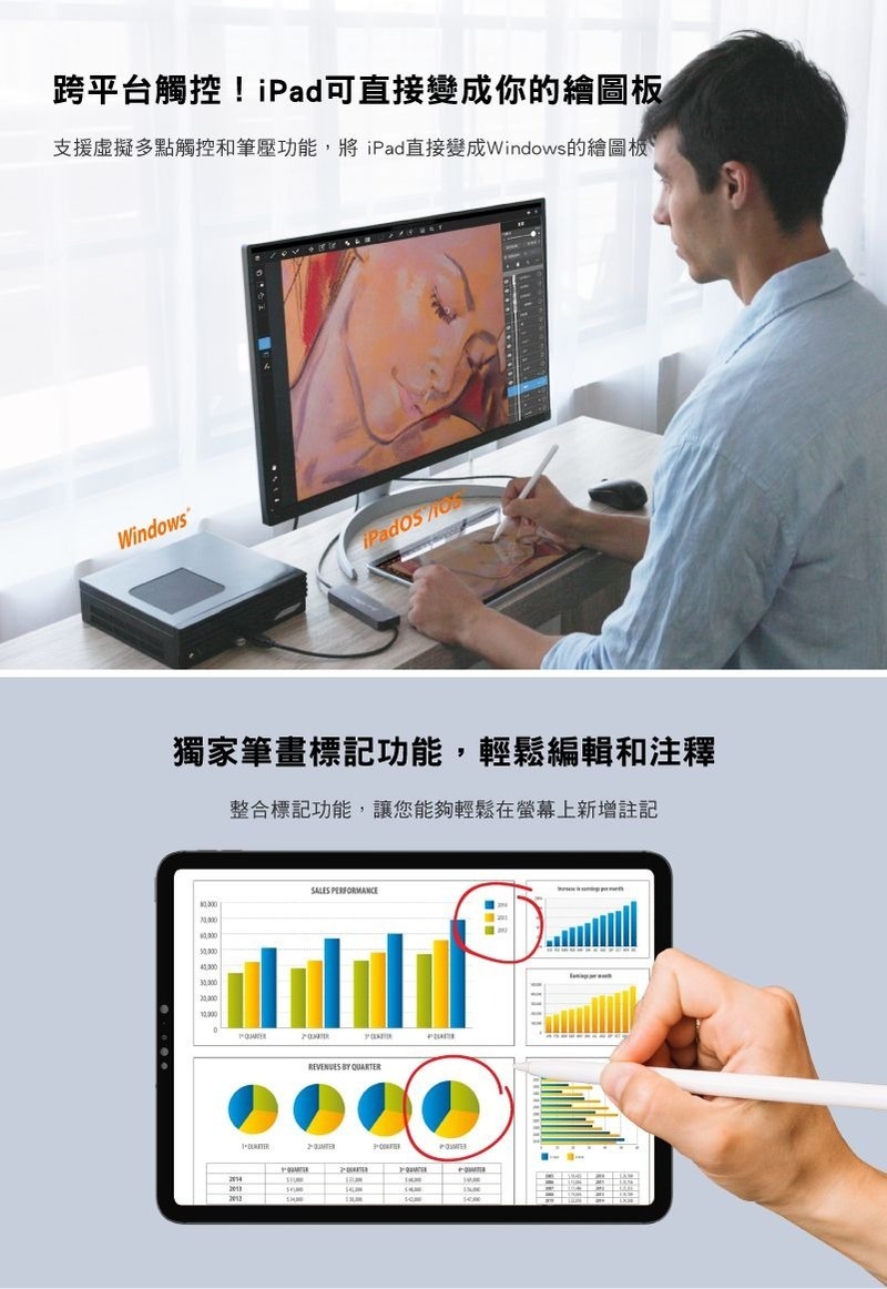 .支援虛擬多點觸控和筆壓,iPad可直接變手繪板