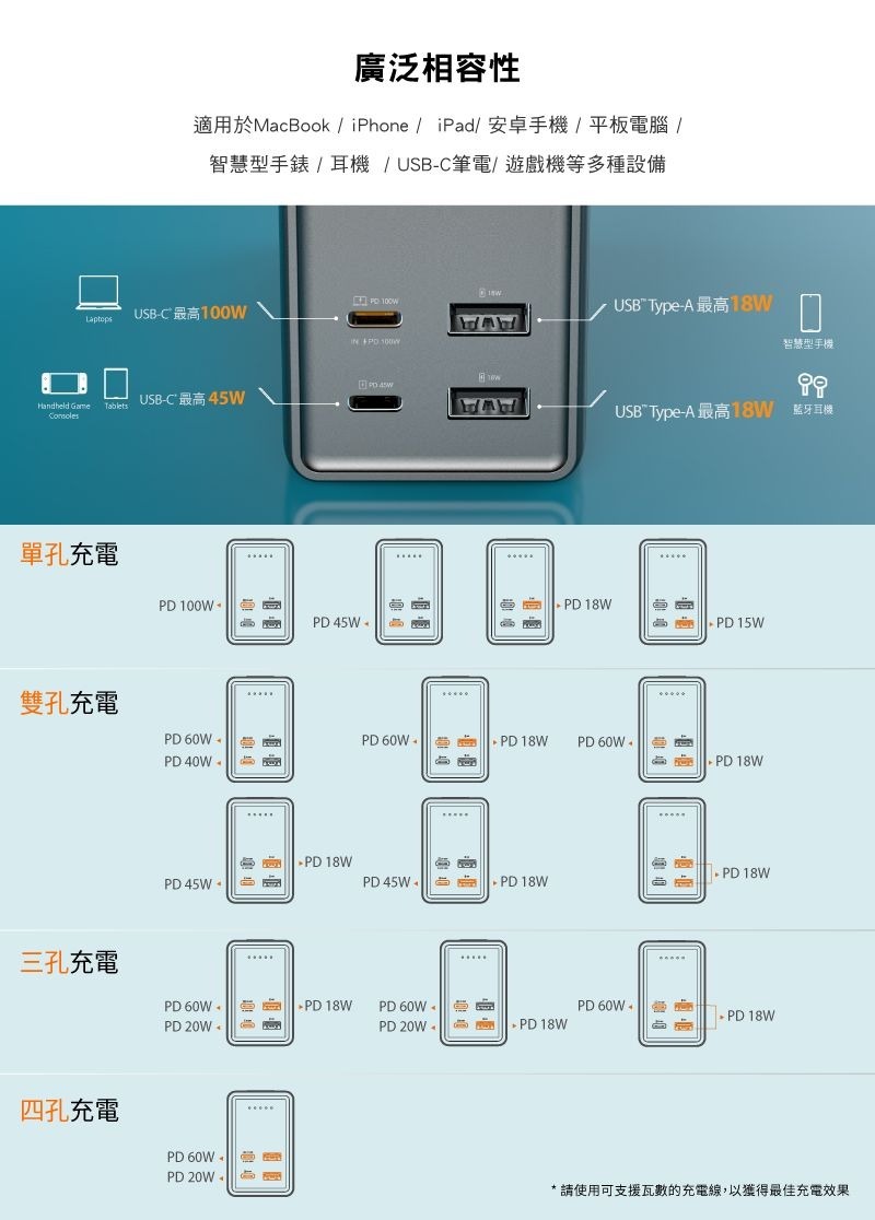 .適用多種裝置, ,同時可充4台裝置