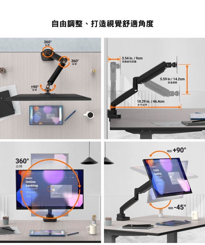 .兩用底座設計,可夾桌,可穿桌