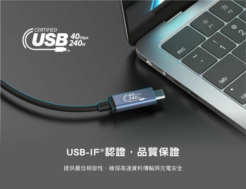 .USB-IF認證,具備40Gbps極速傳輸速度