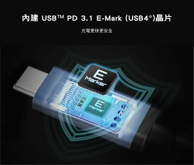 .內建PD3.1 E-Mark(USB4®)晶片