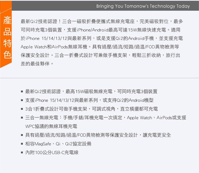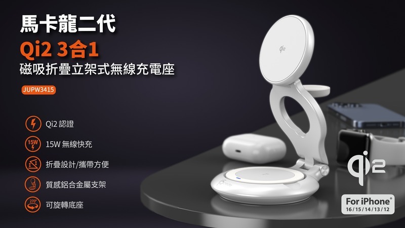 .最新Qi2技術認證,最高15W磁吸無線充電