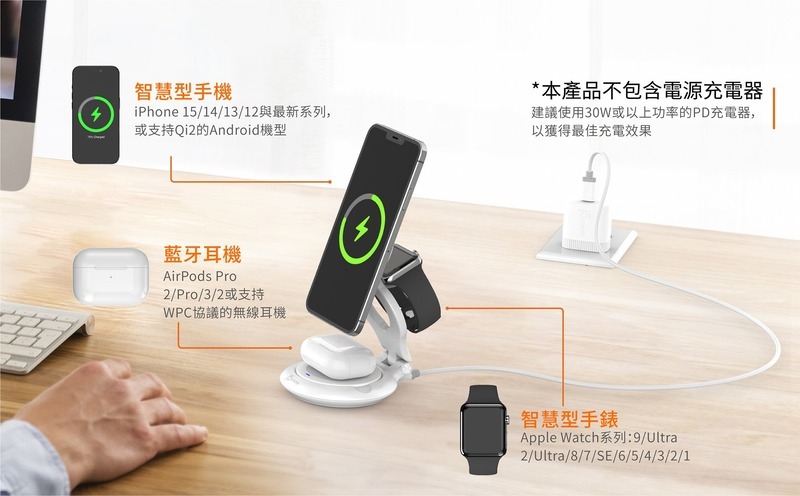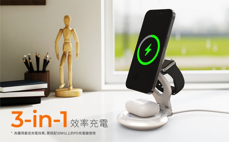 .三合一無線充電:手機/手錶/耳機充電一次搞定