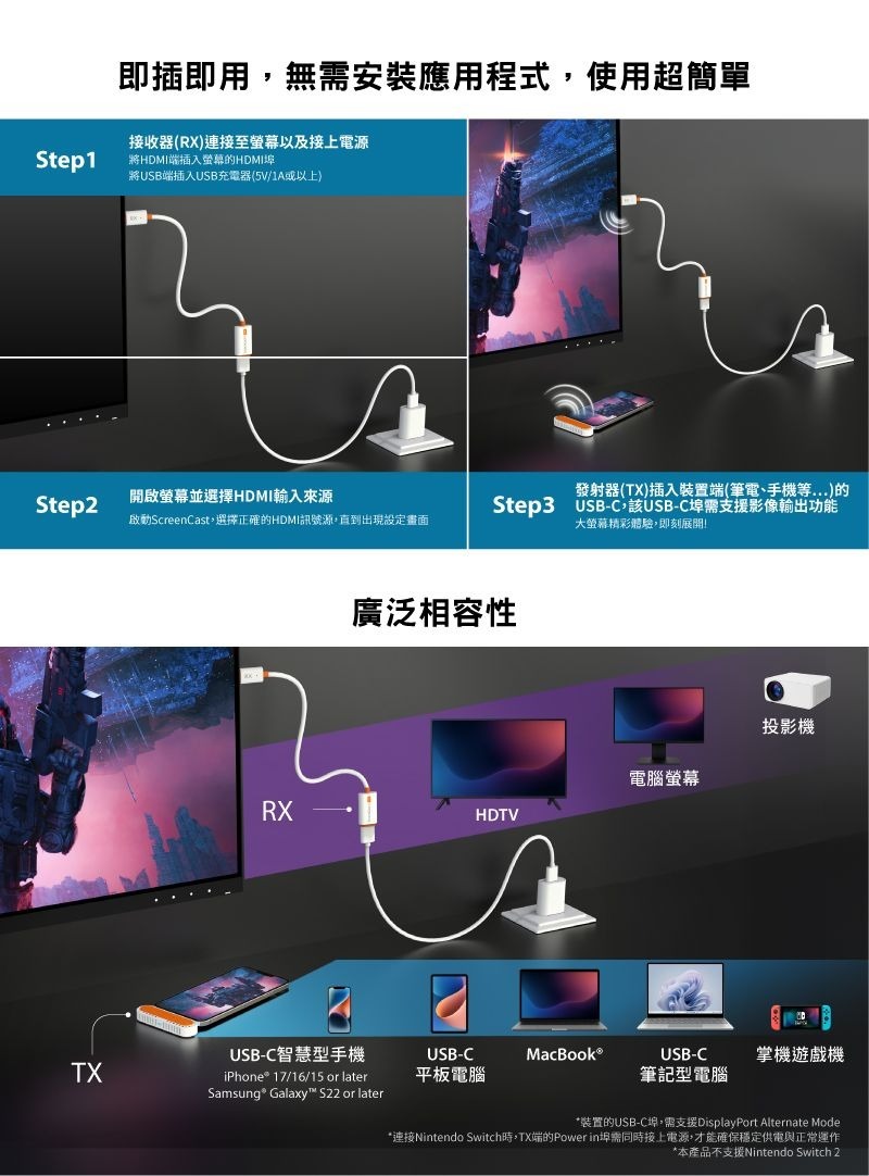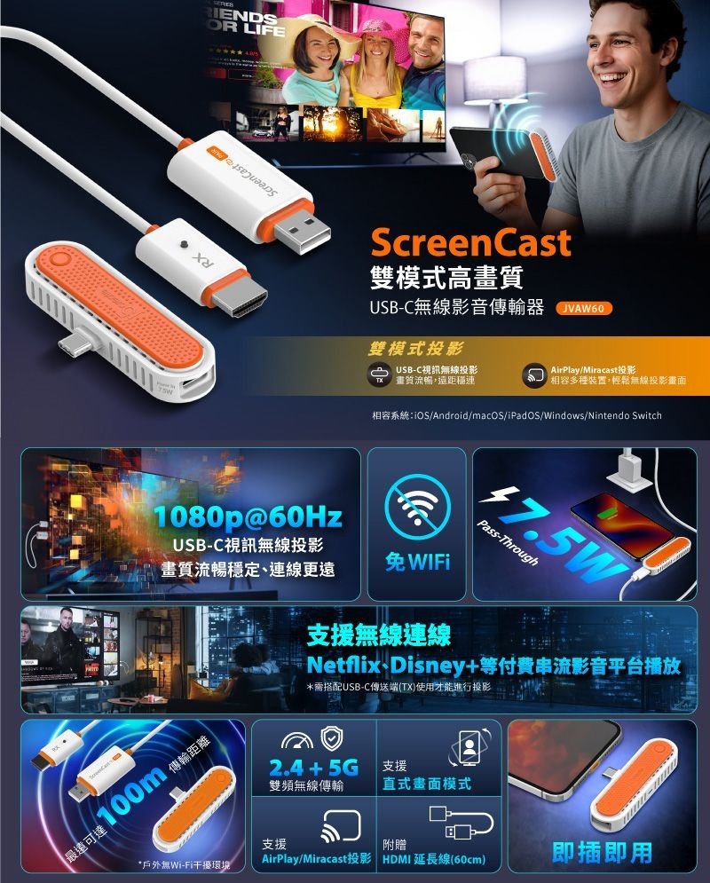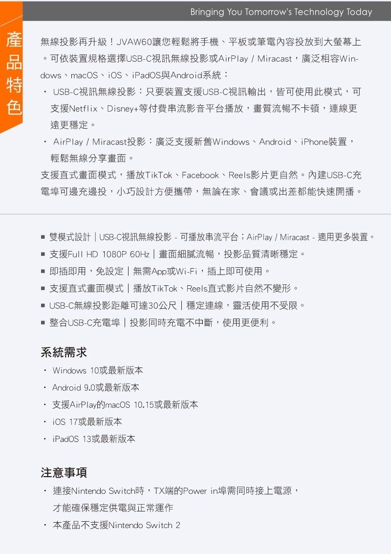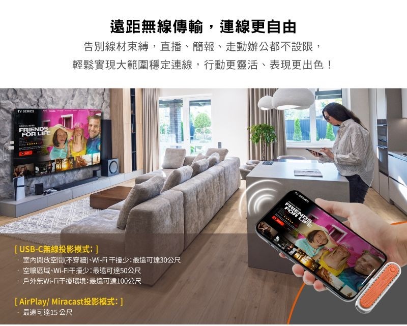 .雙模式設計,USB-C視訊無線投影