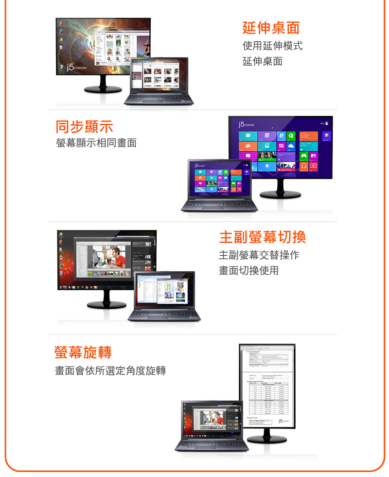 .顯示模式:延伸/同步/主副畫面切換/旋轉