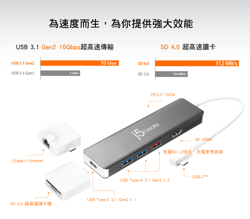 .全台唯一 Gen2 10Gbps+SD 4.0讀卡