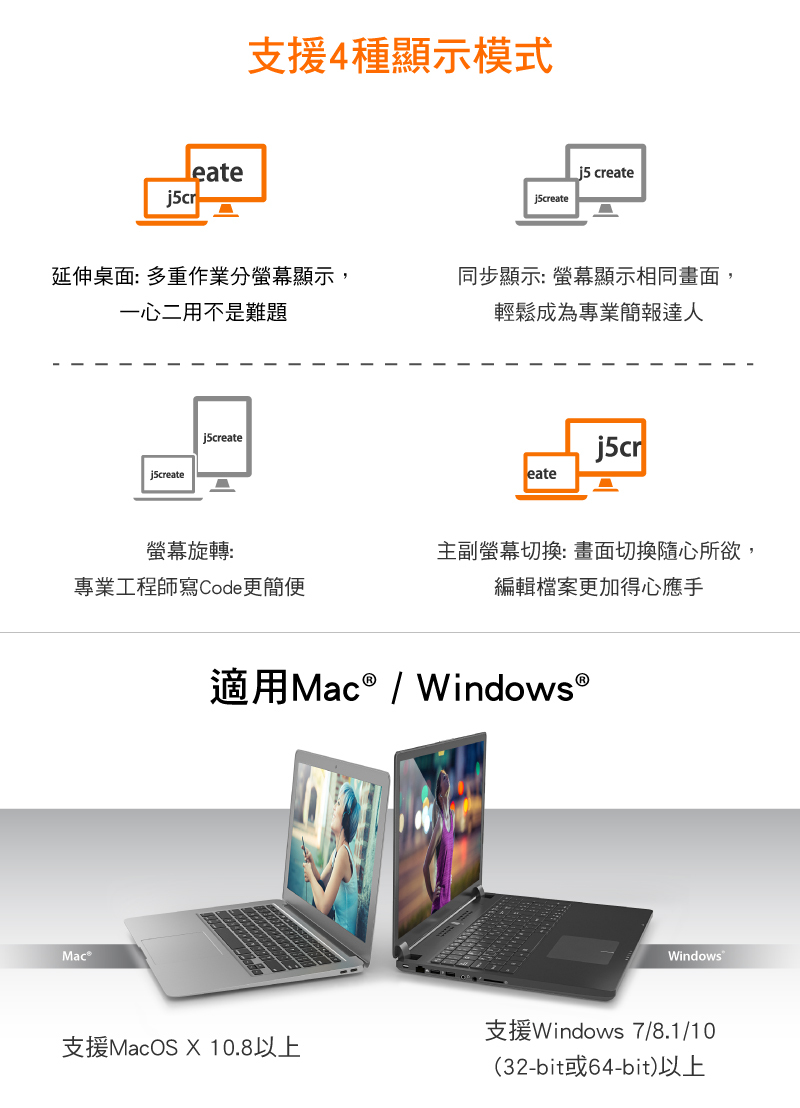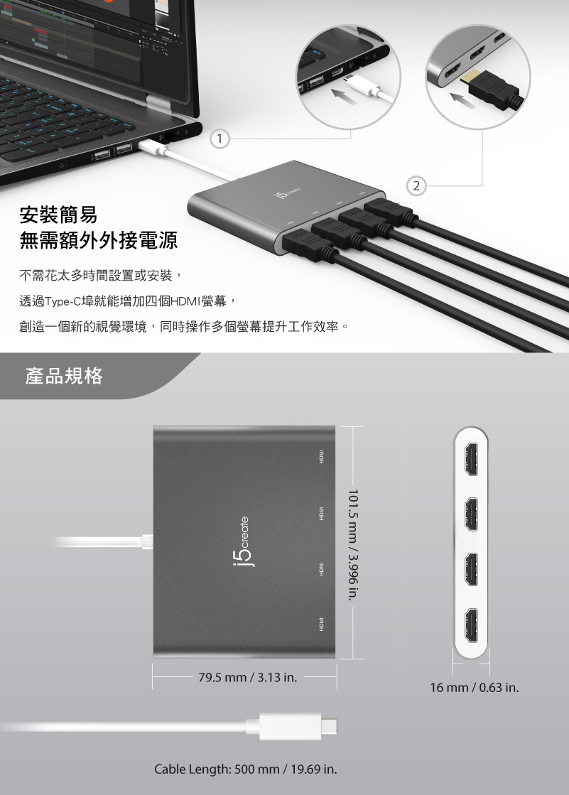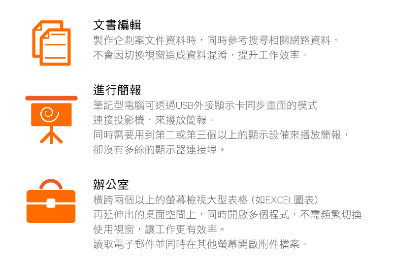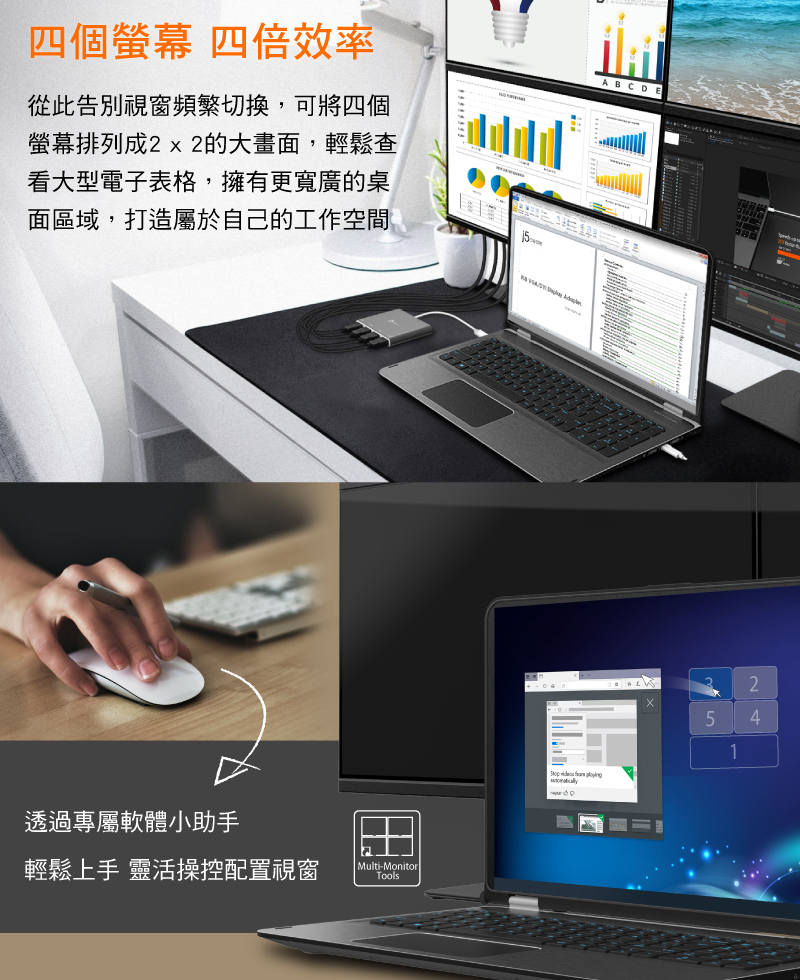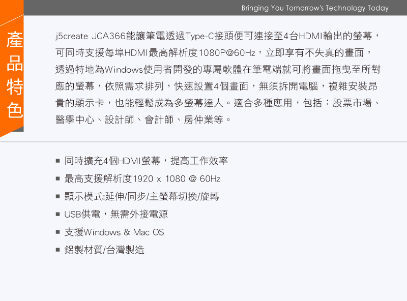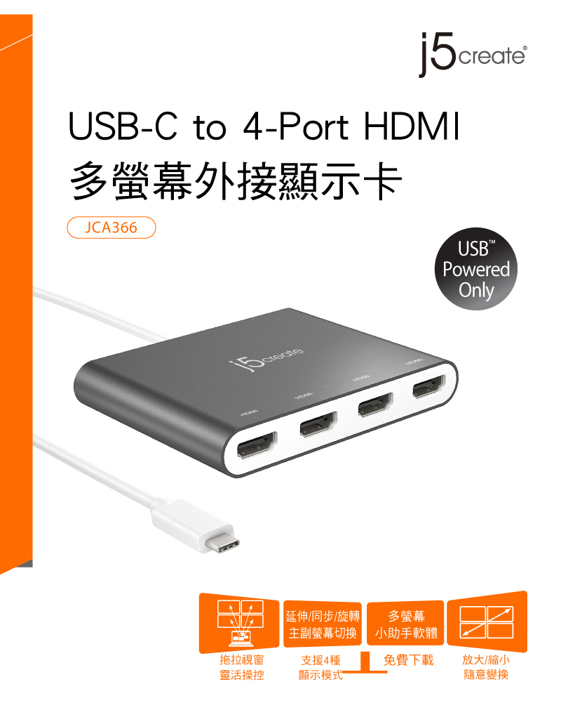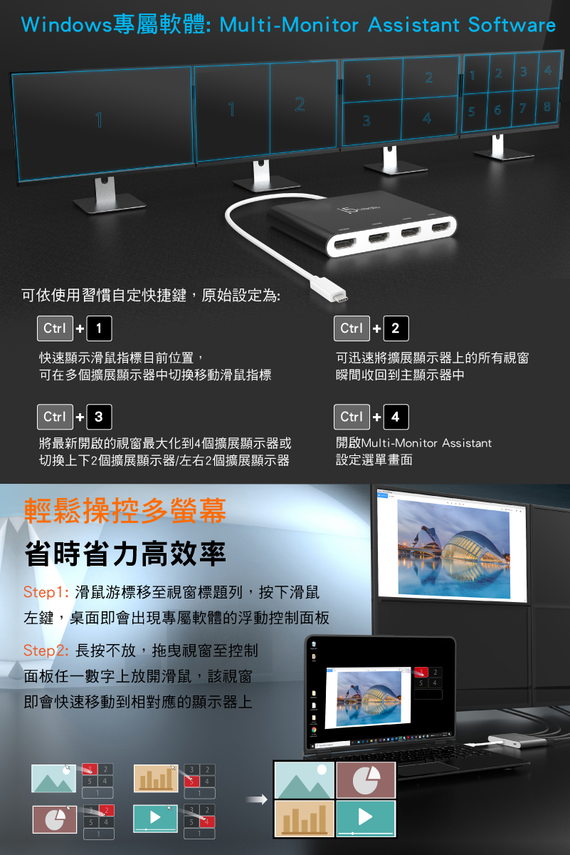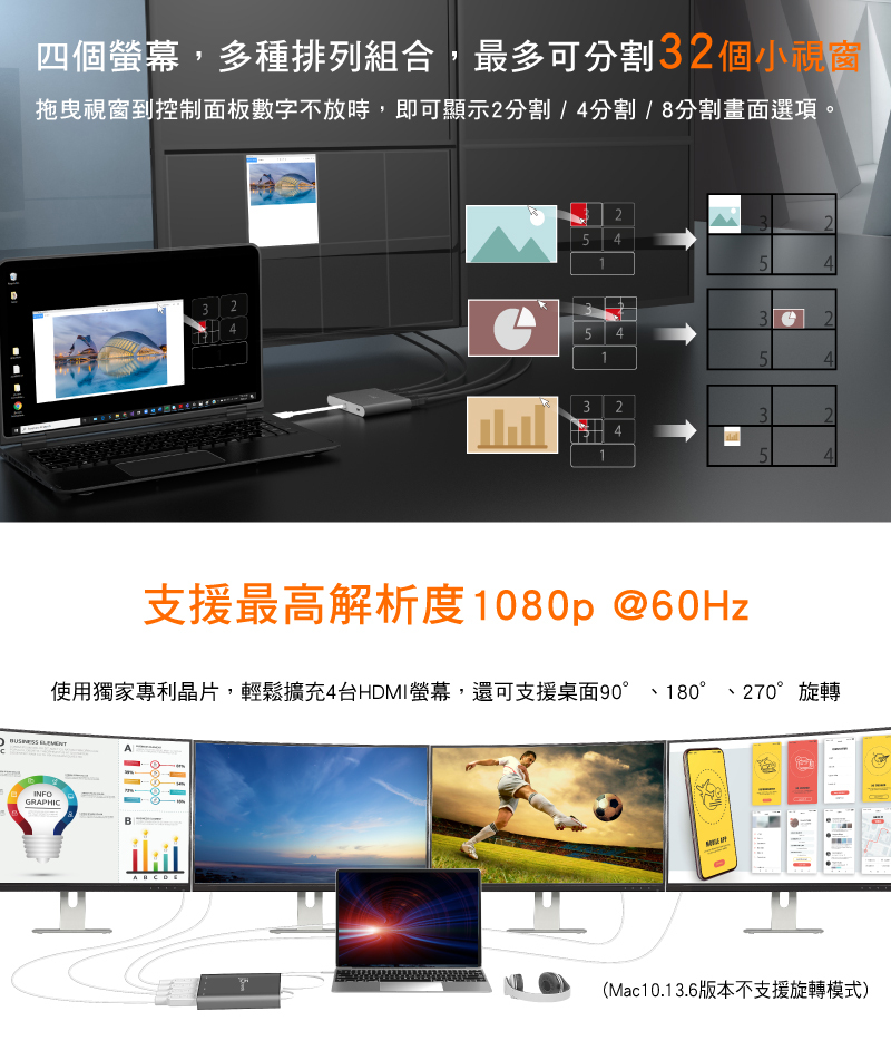 .支持同時四螢幕延伸及同步最高1080P@60Hz